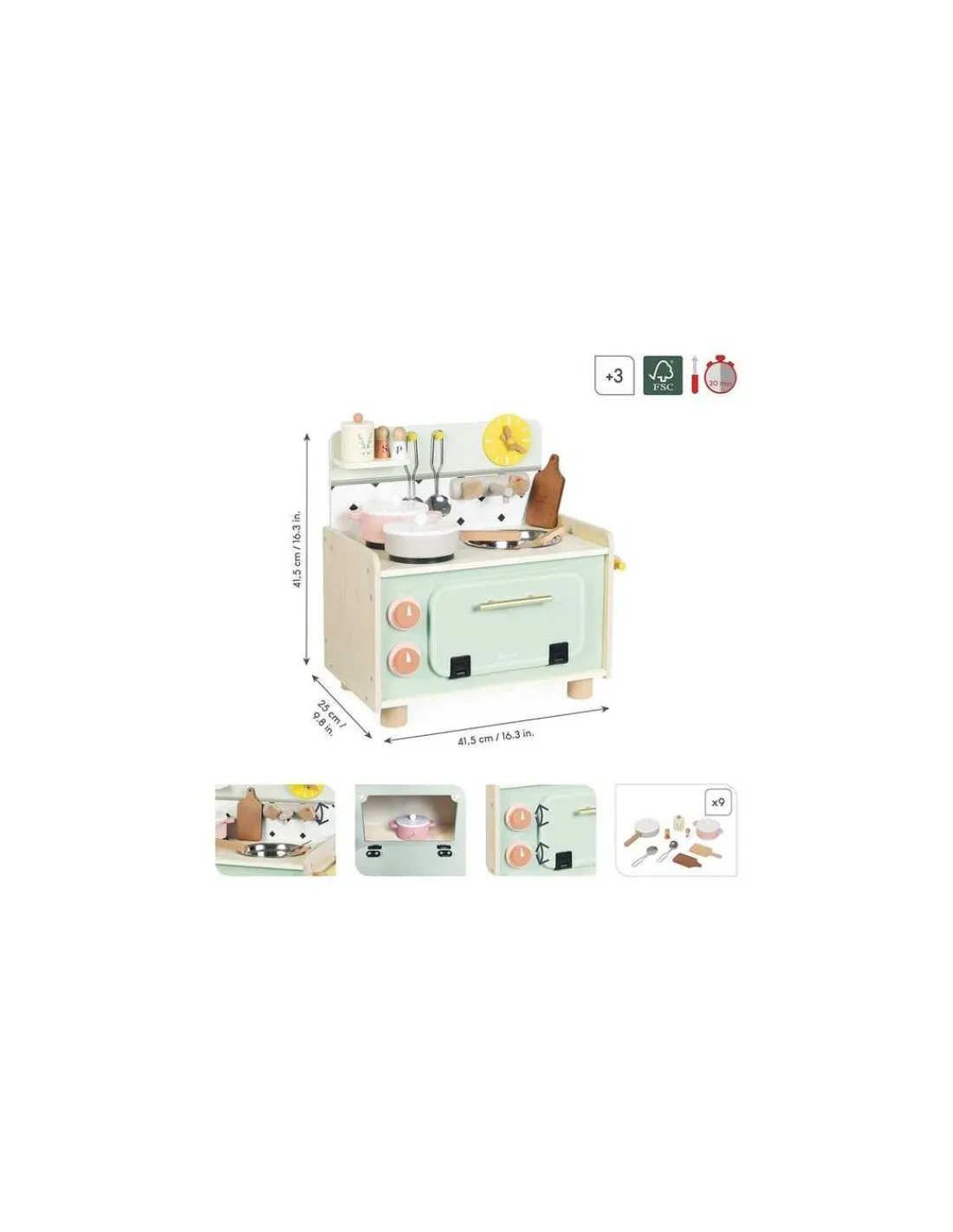 Découvrez la kitchenette de la collection Mamie Soleil de Janod, une cuisine en bois conçue pour les enfants dès 3 ans, idéale pour préparer de délicieux petits plats.
