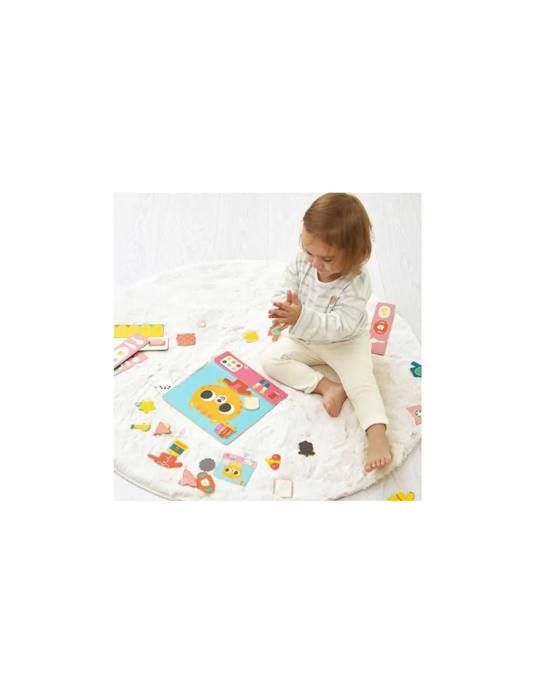 Ce jeu pédagogique et amusant comprend un grand plateau en bois illustré mettant en scène Moustaches le chat, ainsi que 30 magnets permettant de recréer les moments clés des 7 cartes modèles incluses. Les enfants pourront associer chaque activité à un moment précis de la journée, favorisant ainsi leur compréhension et leur autonomie.
