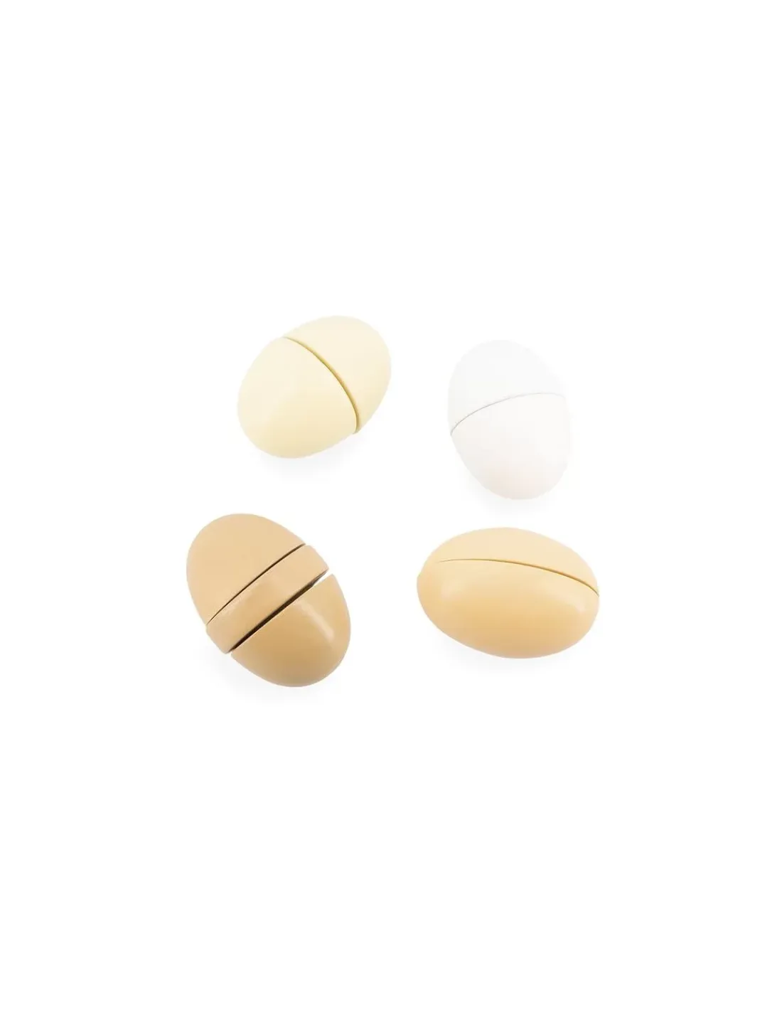 Découvrez la dinette Les oeufs du petit chef de Janod, une boite de 4 oeufs en bois pour jouer autour de la cuisine avec ses copains ou ses poupées à partir de 3 ans.