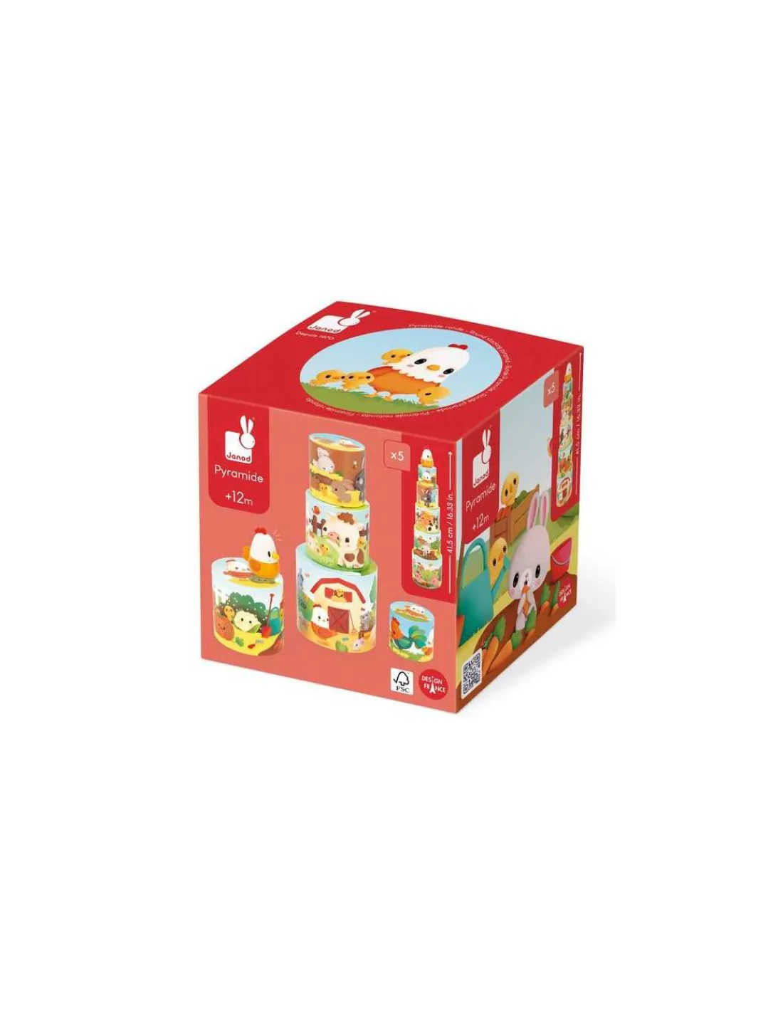 Découvrez Ma première pyramide Poule de la collection Ferme de Janod, un jouet d’éveil composé de 5 cylindres à empiler et d’une figurine en forme de poule. Une pyramide ronde qui fera le bonheur des enfants dès 12 mois.