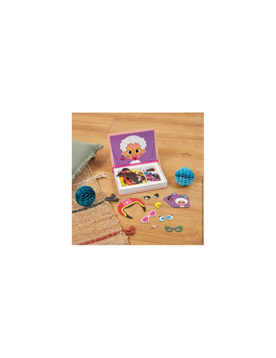 Le jeu se compose de 55 magnets et de 10 cartes illustrés avec des visages de filles.