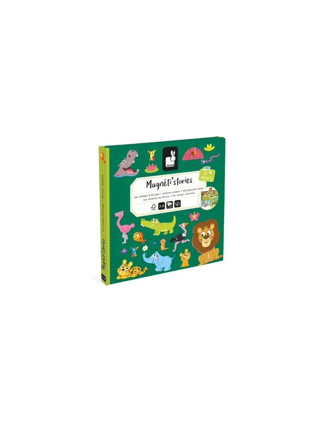 Découvrez le Magnéti’stories Les animaux d’Afrique de Janod, un jeu magnétique dans lequel les enfants dès 3 ans, vont s’amuser à imaginer des scènes grâce à des magnets représentant des animaux sauvages.