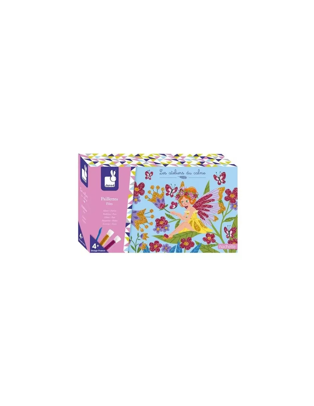 Découvrez le coffret créatif paillettes fées Les ateliers du calme de Janod, une activité créative pour les enfants à partir de 5 ans. Mettez des paillettes or et rose pour illuminer les 3 tableaux sur le thème des fées. Votre enfant suit les modèles du livret et met à l’épreuve sa motricité et sa concentration pour décorer les trois tableaux autocollants.