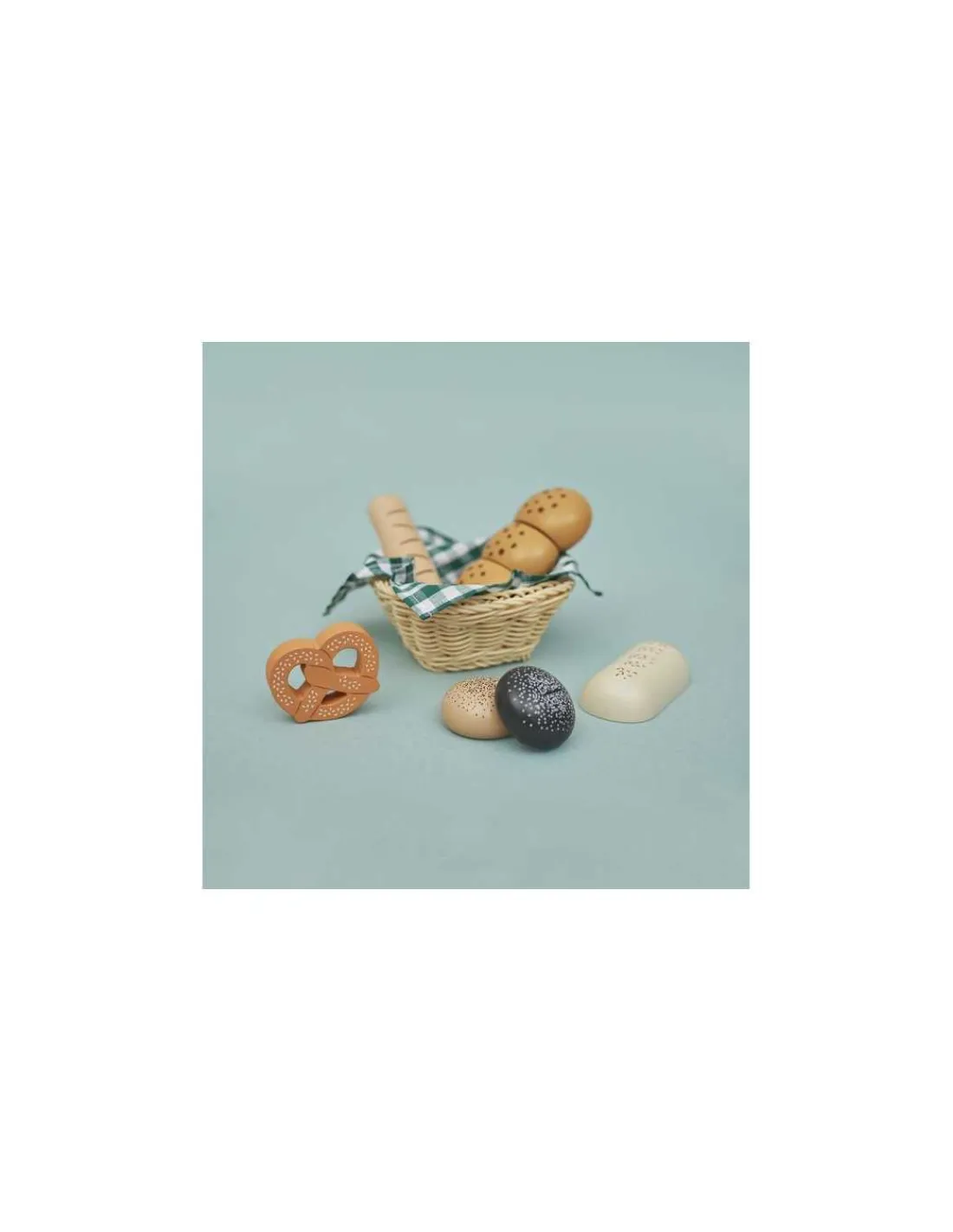 Idéal pour jouer au boulanger, ce set ludique et réaliste invite les enfants à découvrir et manipuler différents pains. Ce joli panier contient une délicieuse sélection de pains en bois : une baguette, un pain de campagne, deux pains ronds, un bretzel et une brioche à découper. Chaque élément est soigneusement conçu pour offrir une expérience réaliste.
