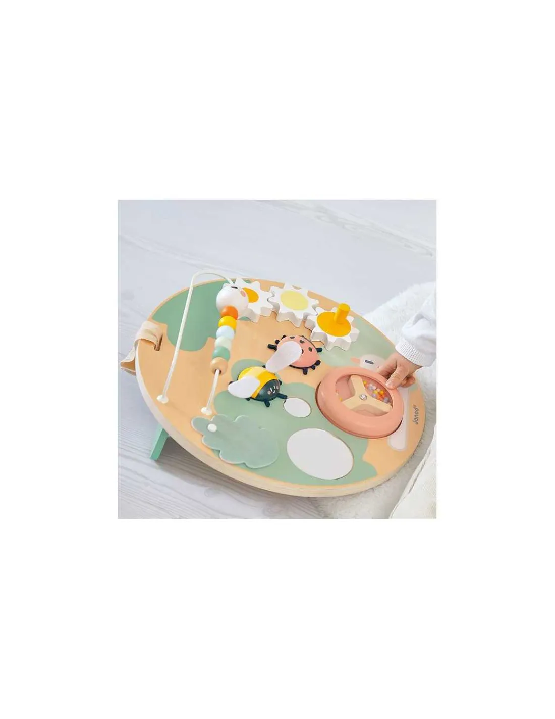 Découvrez le panneau d’activités de la collection Sweet Cocoon de Janod, un jouet d’éveil en bois avec 7 activités pour éveiller bébé dès 12 mois.