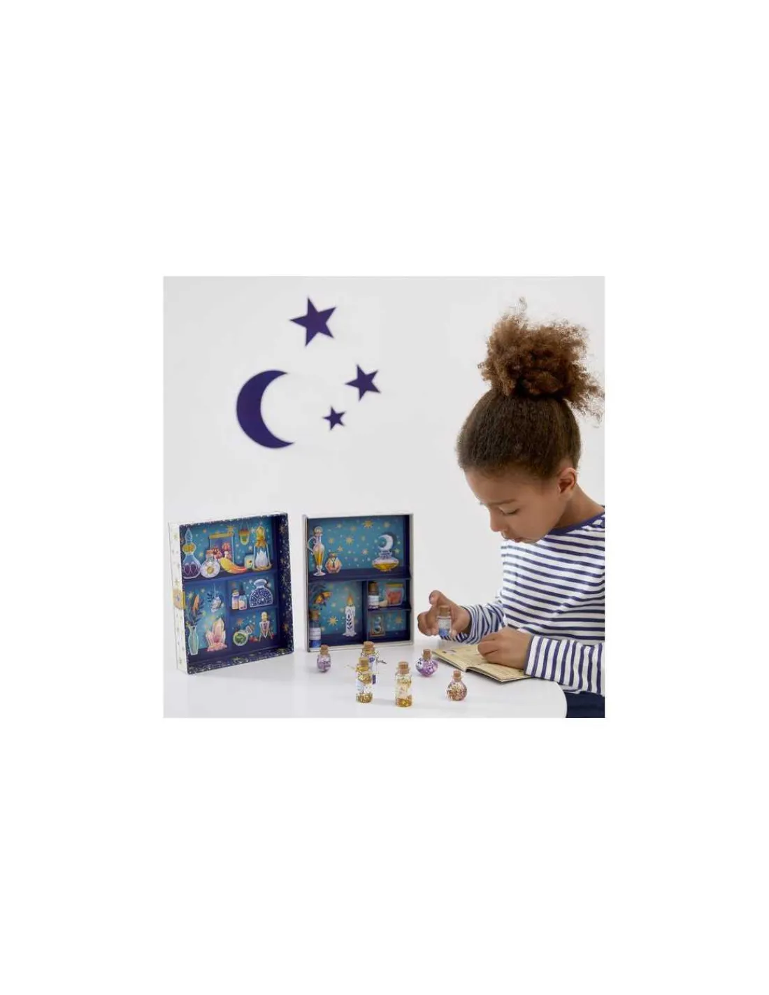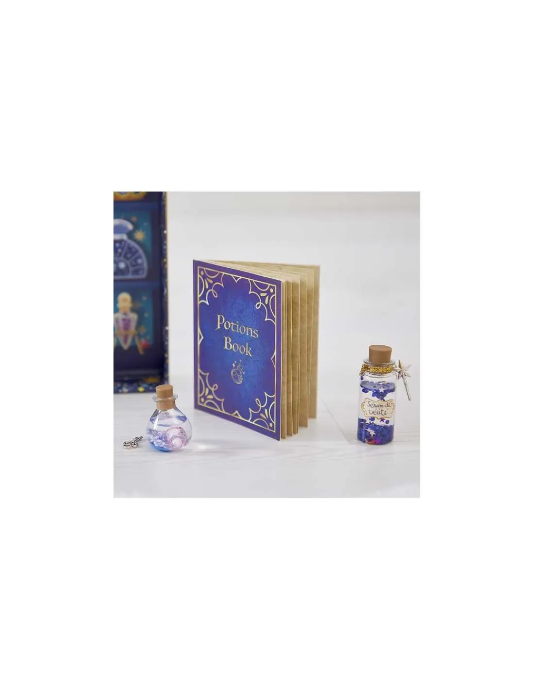 Grâce à ce superbe coffret, les jeunes apprentis sorciers vont pouvoir créer des potions magiques dans de jolies petites fioles. Ils trouveront tout ce qu’il faut pour concocter des mélanges aux effets visuels époustouflants : sables colorés, sequins, mini strass… Le coffret est également accompagné d’un petit grimoire contenant des recettes de potions à lire et à compléter.