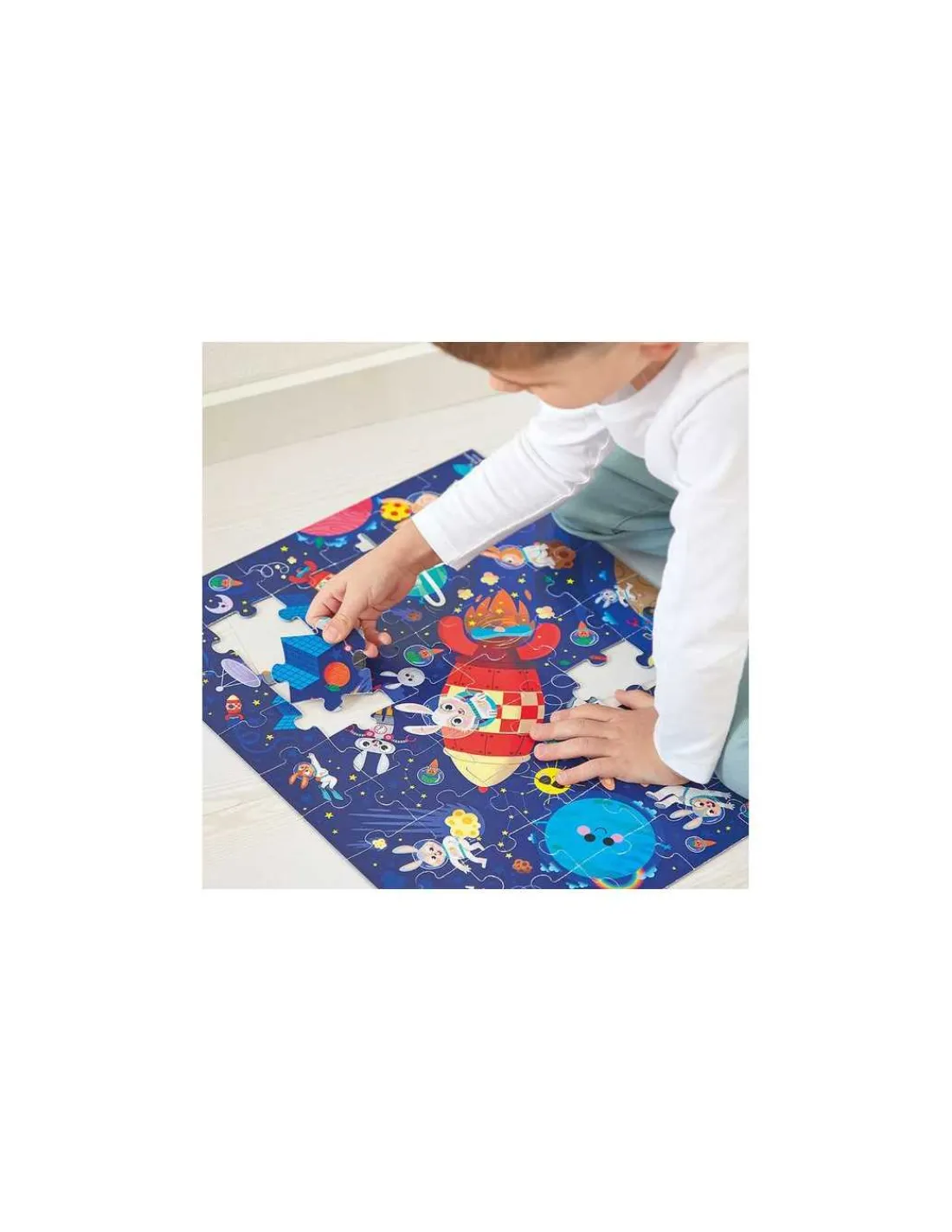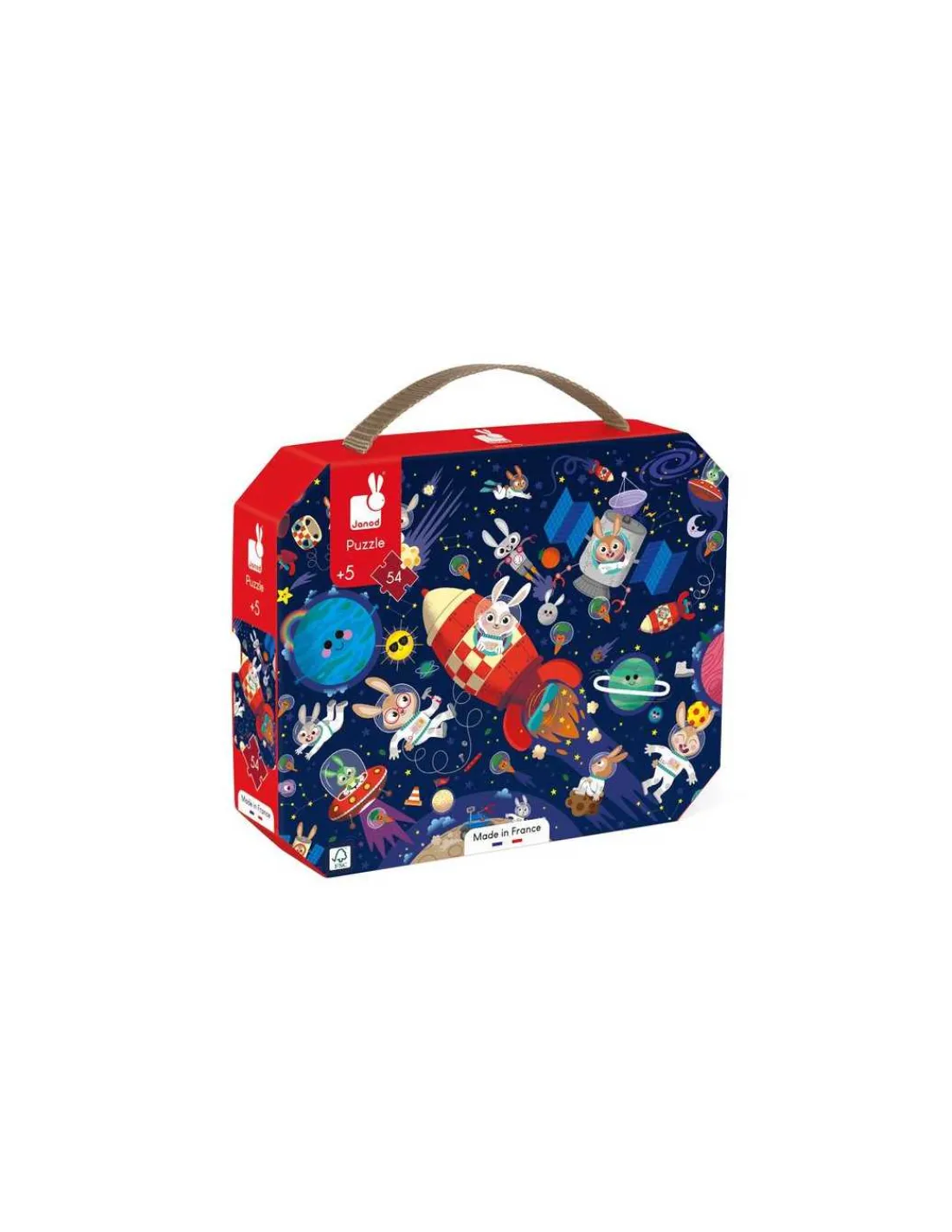 Après avoir assemblé les 54 pièces du puzzle, votre enfant embarquera pour une fantastique aventure à bord de la célèbre fusée Janod en compagnie de nombreux lapins, l’animal emblématique de la marque.