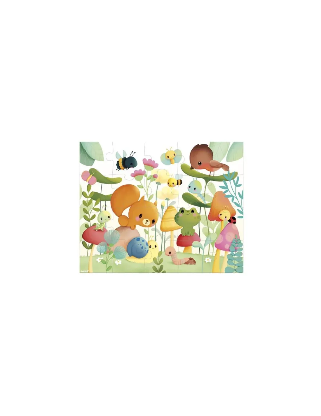 Découvrez le puzzle Les compagnons du jardin de Janod, un joli puzzle de 20 pièces en carton pour les enfants dès 2 ans. Un puzzle fabriqué en France avec une belle illustration colorée et amusante qui plaira beaucoup à votre enfant.