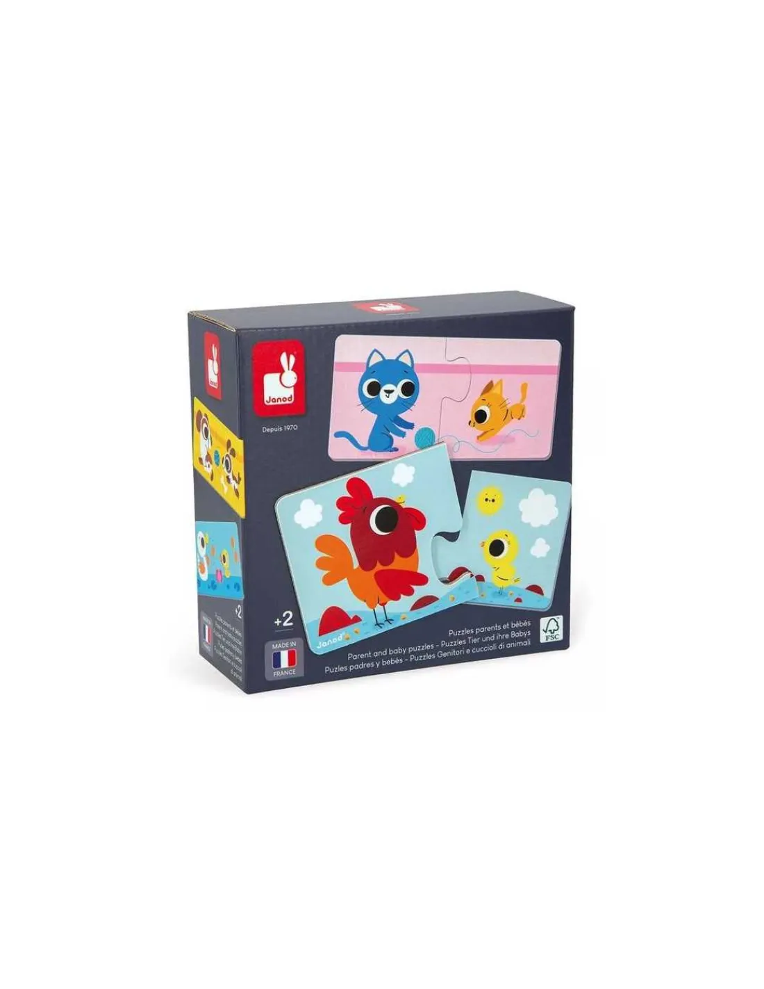 Découvrez le puzzle Parents et bébé animaux de Janod, un puzzle éducatif pour les enfants à partir de 2 ans. Un premier jeu d’association simple et ludique sur le thème des animaux, dans lequel l’enfant doit associer le bébé avec son papa ou sa maman.