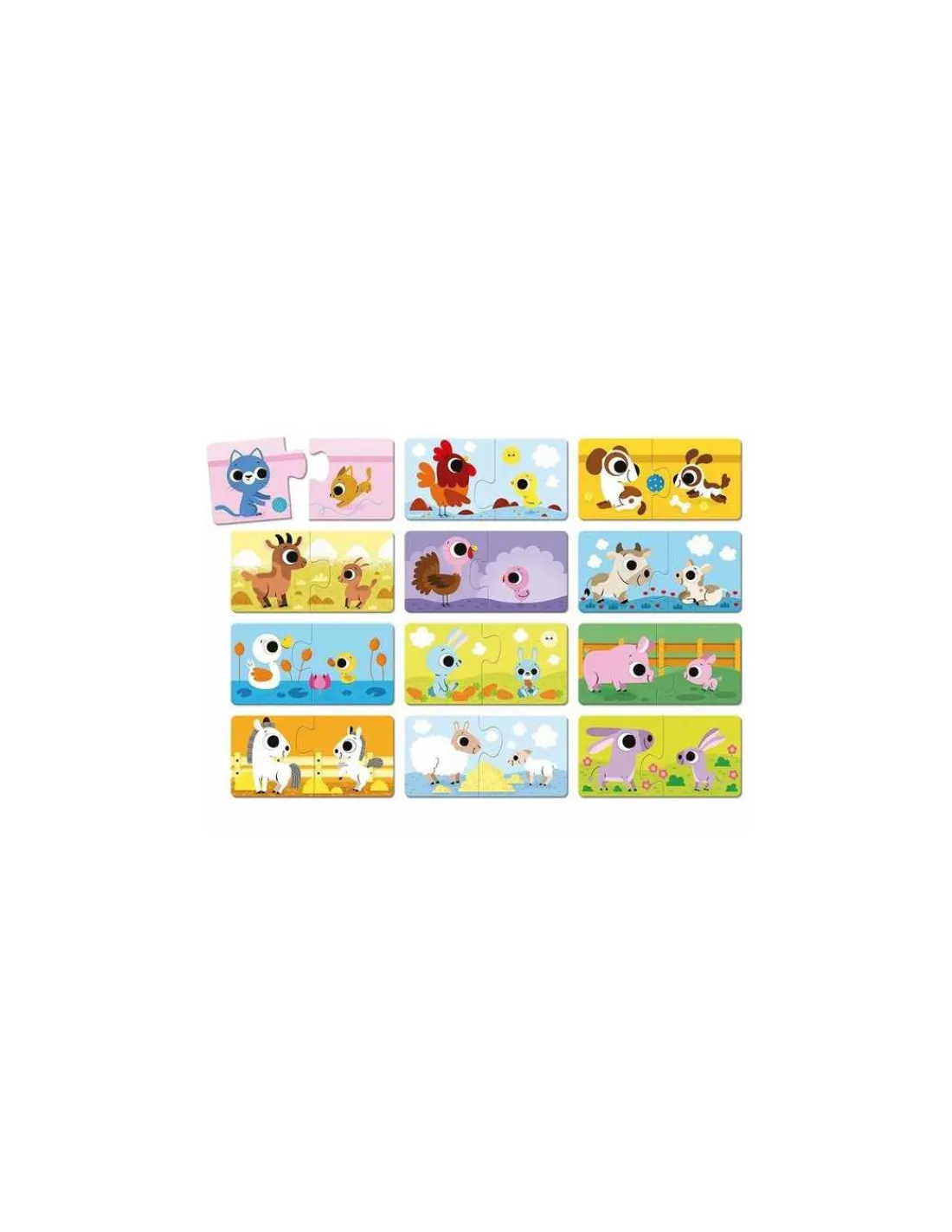 Le coffret contient 24 pièces permettant de réaliser 12 puzzles de 2 pièces. Un jeu éducatif qui favorise le langage et qui permet aux enfants de développer leur vocabulaire. Un puzzle auto correctif, car seules les pièces correspondantes forment un puzzle parfait.