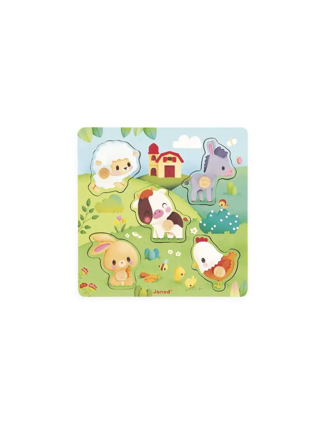 Découvrez le puzzle tactile Ferme de Janod, un jouet en bois conçu pour les enfants dès 18 mois. Avec ses 5 pièces à encastrer, ce puzzle en bois invite les enfants à explorer le monde de la ferme tout en s’amusant.