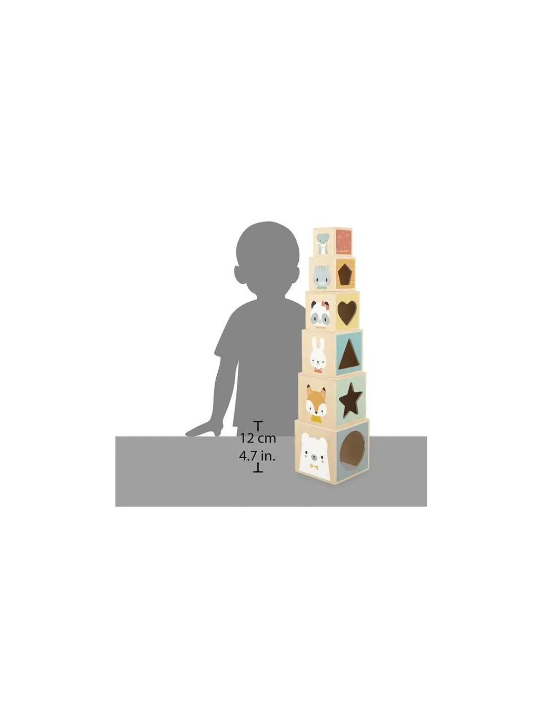 Découvrez la pyramide en bois de la collection Pure de Janod, un jouet en bois conçu pour éveiller les enfants dès 12 mois. Des cubes en bois joliment illustrés avec les adorables animaux de la collection.