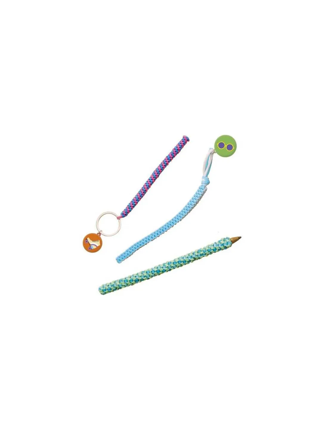 Le coffret comprend les instructions et le matériel nécessaires pour réaliser entre 11 et 14 créations : porte-clefs, décorations et bracelets. 8 modèles différents à réaliser avec des niveaux de difficulté évolutifs. Votre enfant pourra également customiser les modèles avec des breloques en stickers puffy (effet gonflant).