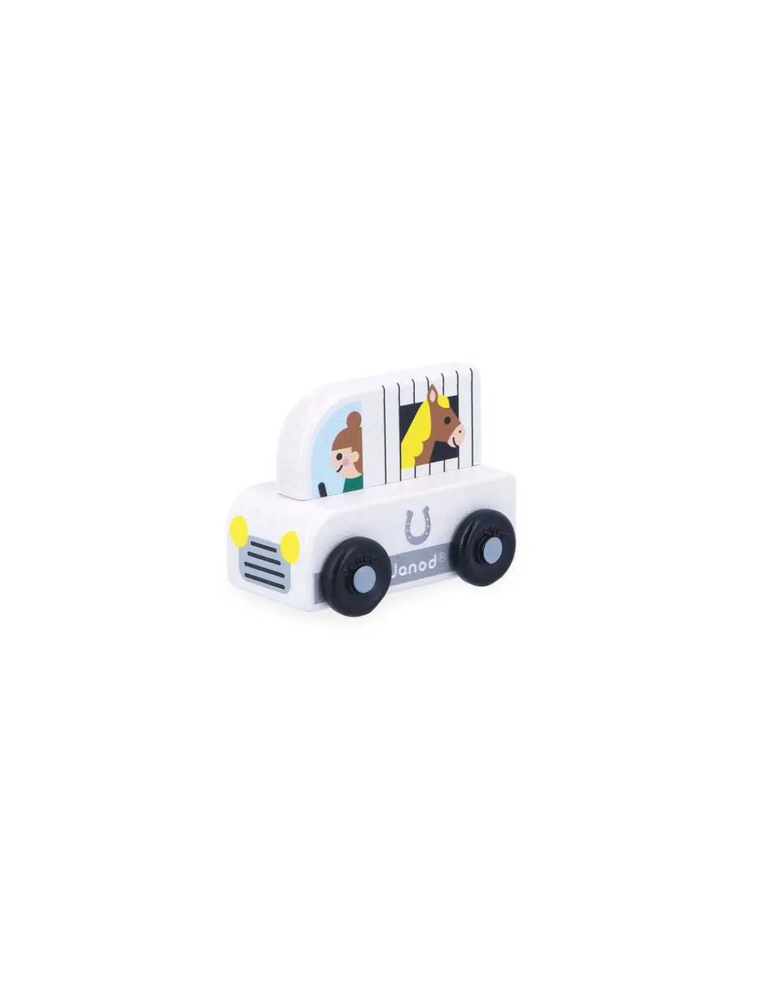 Découvrez le van pour cheval de la collection Cross Roads de Janod, une petite voiture en bois appartenant à l’univers « Campagne« . Parfaite pour les enfants dès 2 ans, cette voiture à pousser est un compagnon idéal pour développer leur imagination.