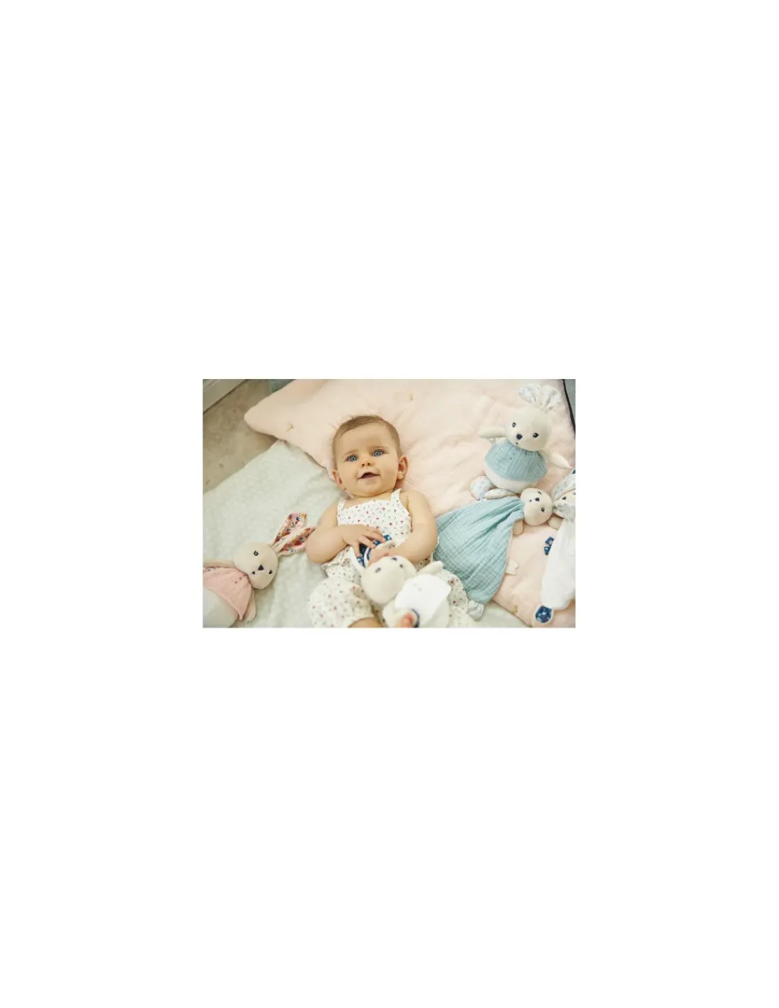Ce mignon petit lapin apprécie les moments de tendresse. Composé d’un côté micro-velours pour la douceur et d’un côté mousseline pour le moelleux, ce lapin deviendra le compagnon parfait pour votre enfant, qui l’adoptera très vite.