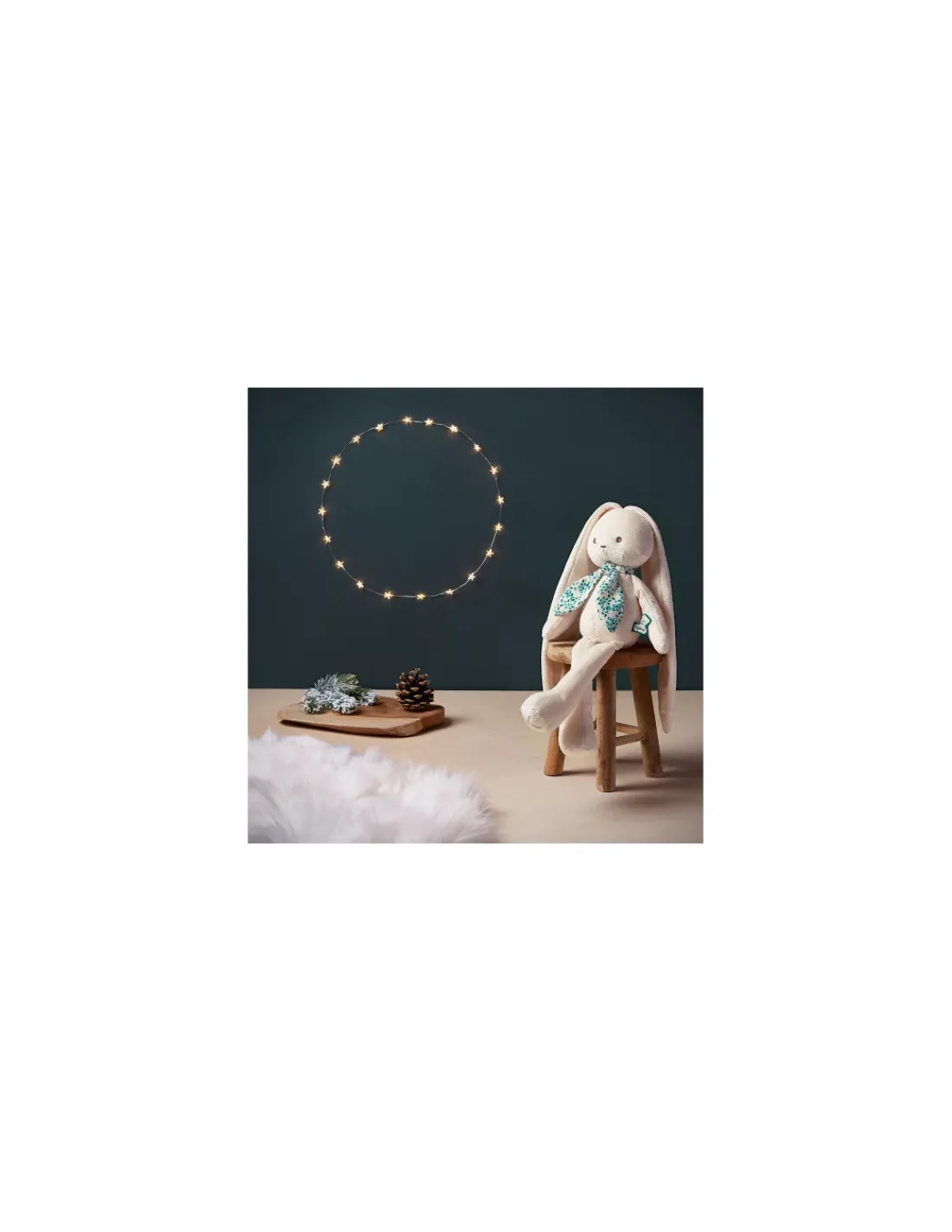 Un joyeux petit lapin qui apprécie les moments de douceur. Il est habillé d’une écharpe à imprimé délicat assortie à son corps. Un mignon lapin avec de longues oreilles pour l’accrocher et ne jamais le perdre. Il est possible de faire un nœud avec les longues oreilles pour ne jamais perdre son Lapinoo, vous pourrez l’accrocher à la poussette, au sac… et ne jamais le perdre.