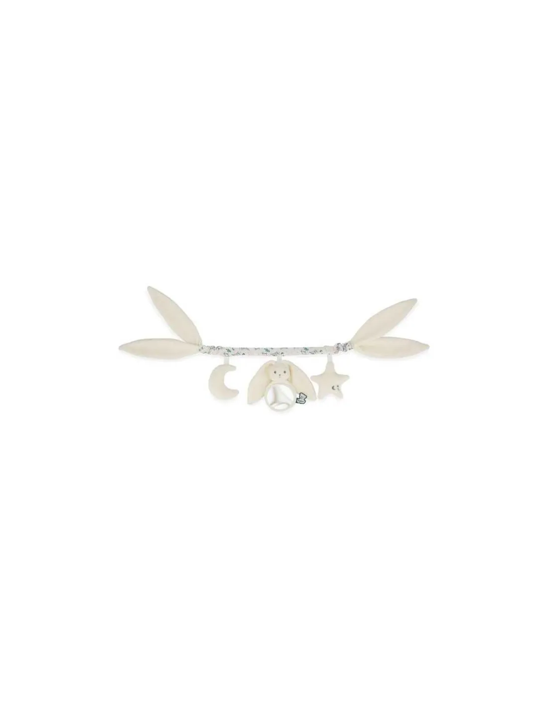 Grâce à ses longues oreilles, la chaîne s’attache partout facilement. Un jouet à accrocher au cosy, au landau ou au siège auto pour divertir bébé lors des sorties et des promenades.