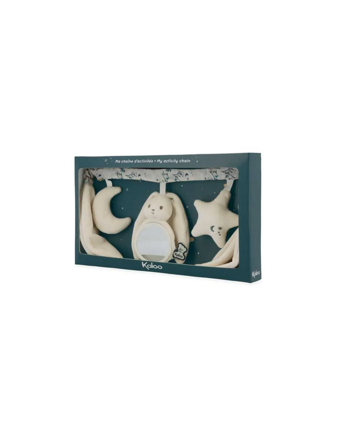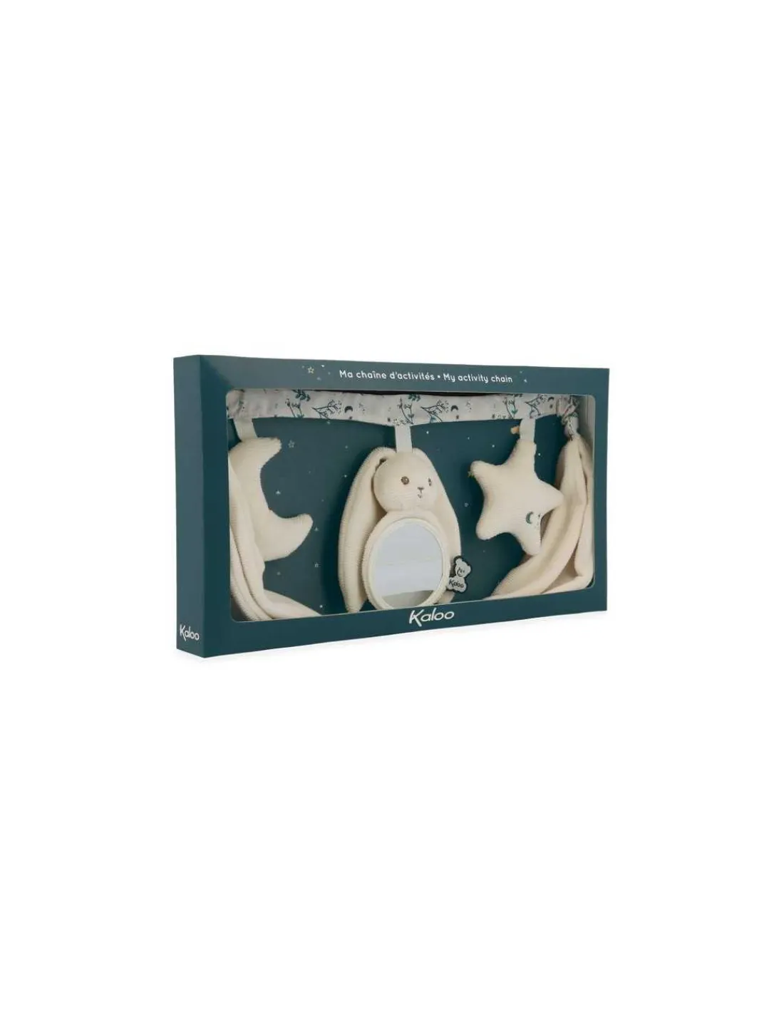 Découvrez Ma chaîne d’activités crème de Kaloo, un jouet en tissu à suspendre pour éveiller les sens de bébé dès sa naissance.