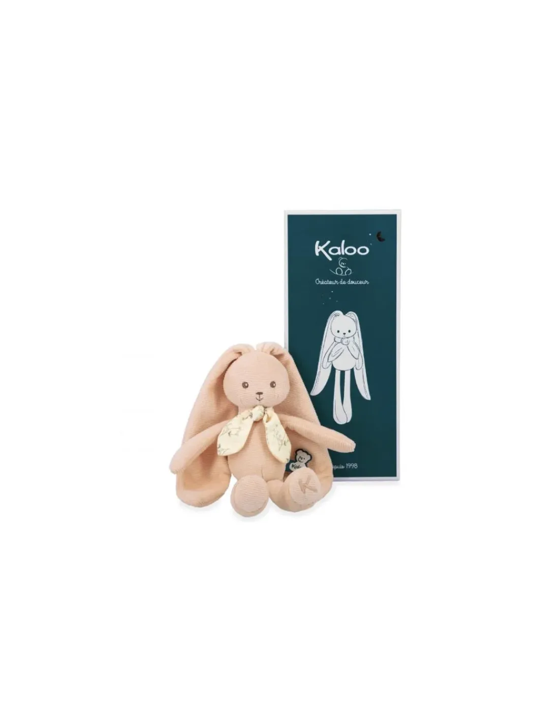 Découvrez le petit lapinoo pêche de Kaloo, un lapinou en velours côtelé aux oreilles extra longues, présenté dans une belle boite cadeau parfaite pour offrir à un bébé.