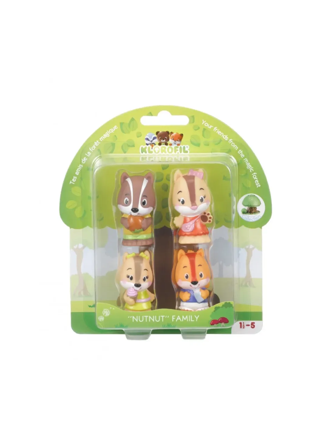 Découvrez la famille de 4 personnages Nutnut de Klorofil, une adorable famille écureuil composée d’un papa, d’une maman et deux enfants pour les enfants à partir de 18 mois. Une famille idéale pour inventer des histoires magiques dans les différents univers de ces petits êtres bienveillants avec Simon, betty, Marc et Mia.
