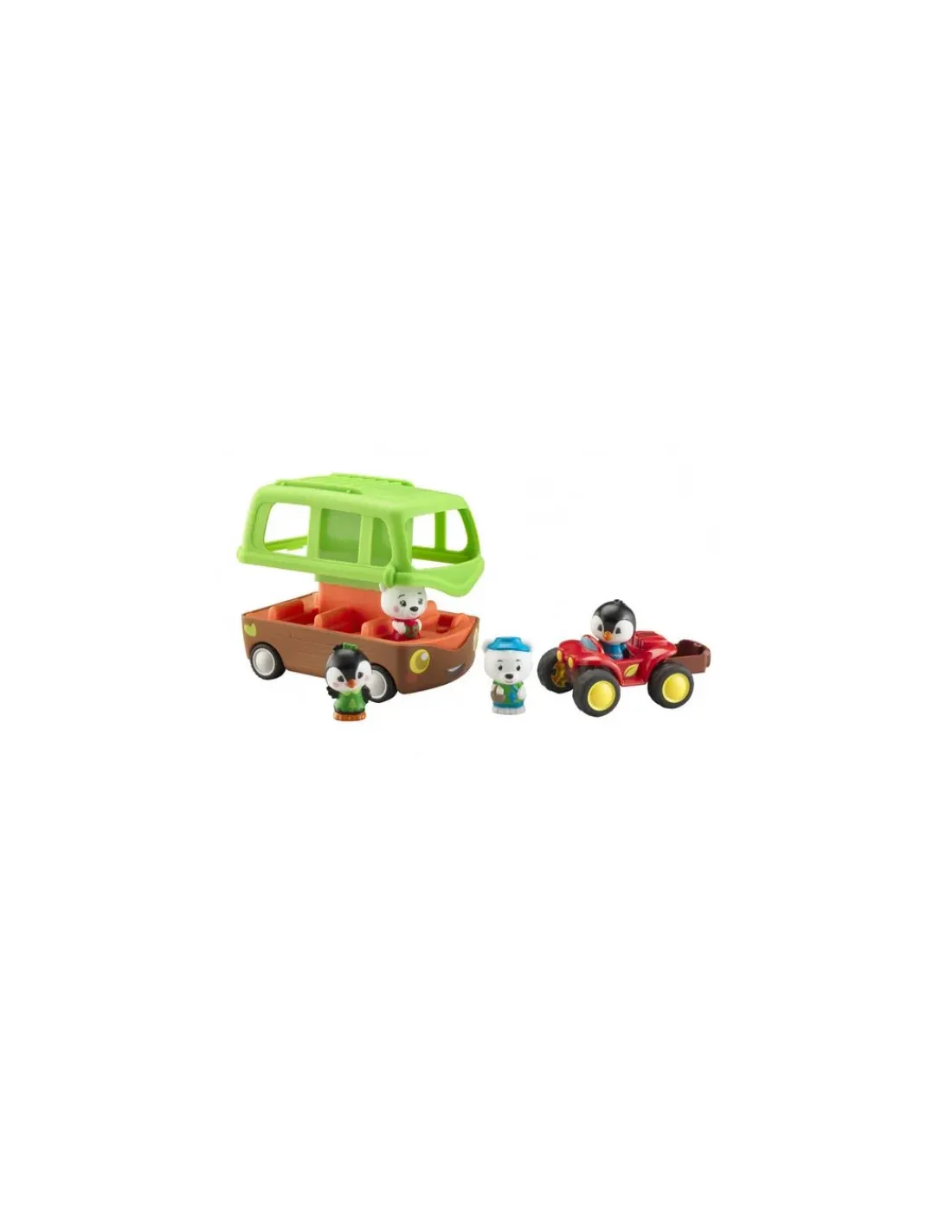 Ce coffret comprend le bus aventure (avec 6 places à bord ainsi qu’un coffre pour mettre les bagages. Magique, pour monter à bord, il faut appuyer sur le toit « Pop ! » pour voir le bus s’ouvrir puis se refermer), un quad (à découvrir, un coffre pop-up laissant apparaitre une deuxième place, après une simple pression. Il permet aussi de cacher tous ses trésors) et 4 personnages exclusifs venant de la banquise (Helmi et Flint de la famille Pingouin, Barry et Holly de la famille Ours polaire).