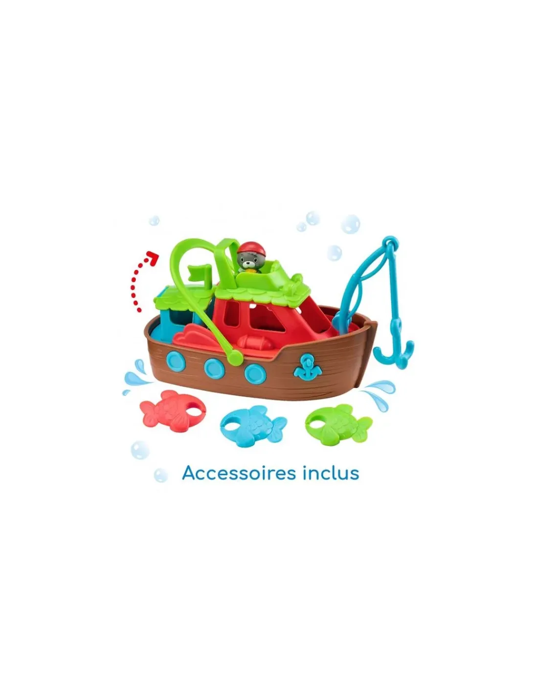 D’abord sous forme d’un bateau, « POP » il se transforme ensuite en une péniche, un bateau de pêche et un voilier offrant ainsi 4 possibilités de jeu. Ludique et amusant, la canne à pêche permet de pêcher 3 poissons. Chaque bateau possède une partie mobile à manipuler (voile, toits…). Pratique, la poignée permet un transport facile.