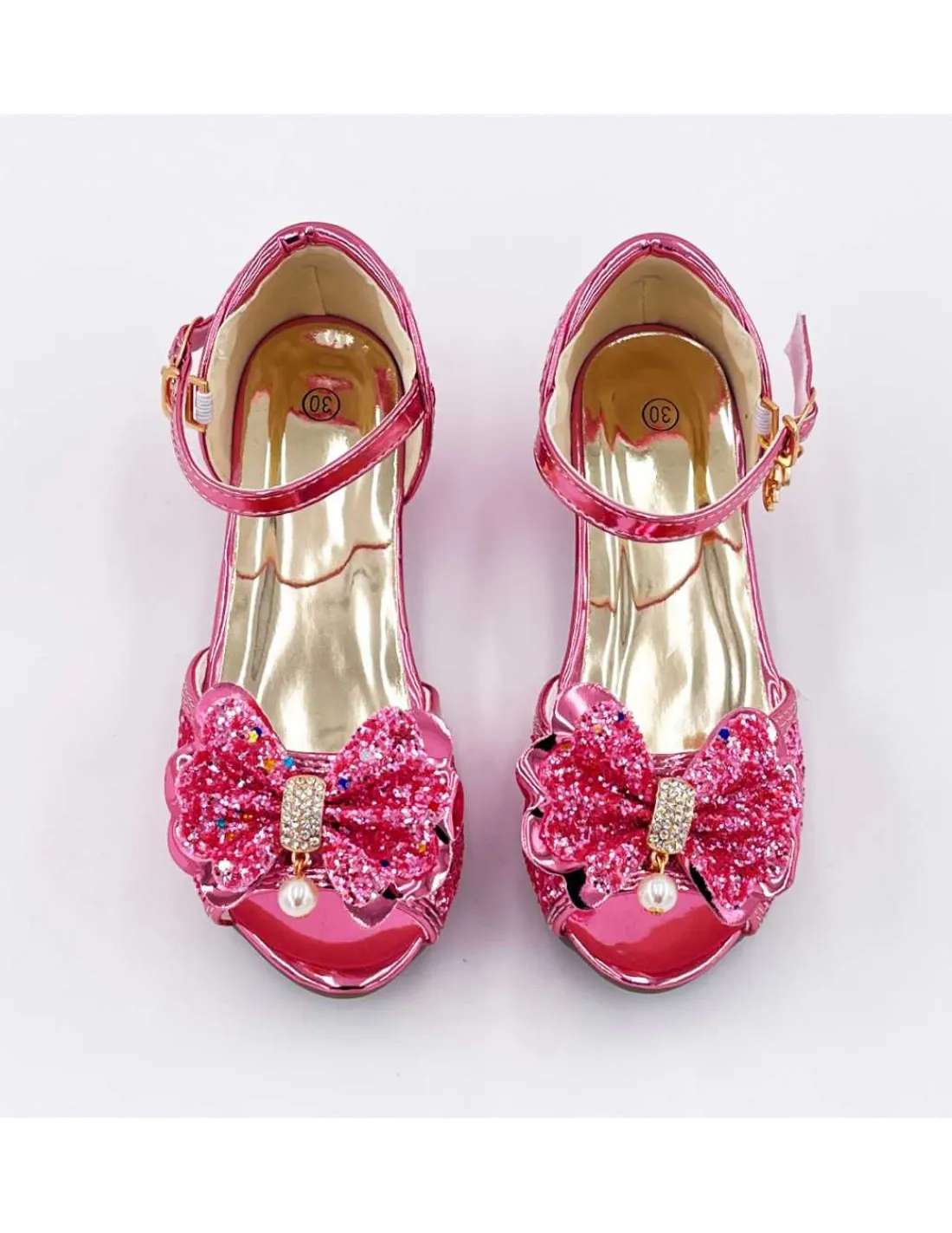 Découvrez les Mules à Nœuds et Paillette Rose 3 – 4 ans de Labay, des chaussures de princesses rose à talon avec sangle pour les jeunes filles de 3 ans et 4 ans.
