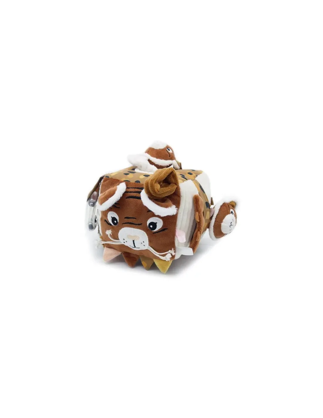 Découvrez le cube d’activités Spéculos le tigre de Déglingos, un jouet en tissu souple et léger qui va éveiller les bébés. Un jouet d’éveil sensoriel facile à attraper, qui offre de nombreuses activités pour le plus grand plaisir des tout-petits.