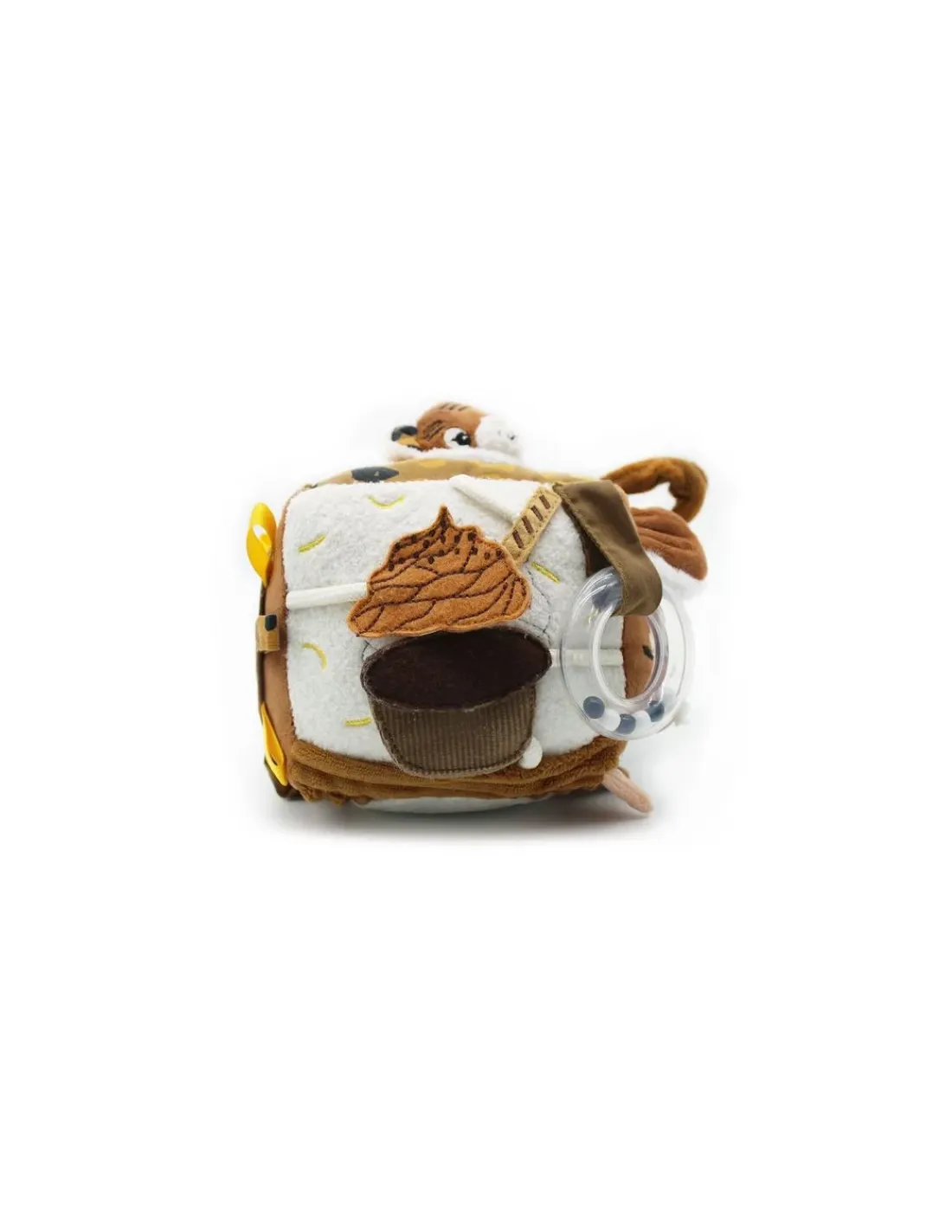 Ce jouet d’éveil marron cassonade et coloré est complet et original. A lancer, mordiller ou secouer, c’est l’éclate assurée. Le jouet d’éveil bébé est idéal pour éveiller tous ses sens grâce à son miroir, son papier bruissant, son hochet, son anneau de dentition…