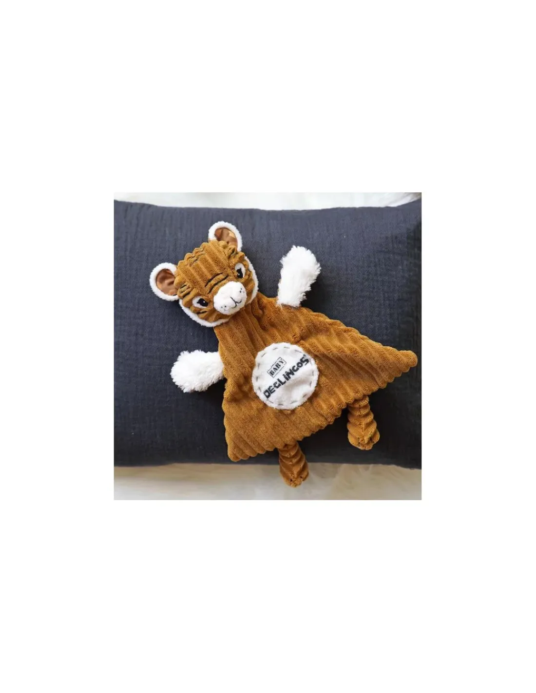 Découvrez le doudou Speculos le tigre, le nouveau personnage Déglingos pour les bébés. Ce doudou plat tout doux à la tête de tigre brun rassurera et accompagnera votre bébé.
