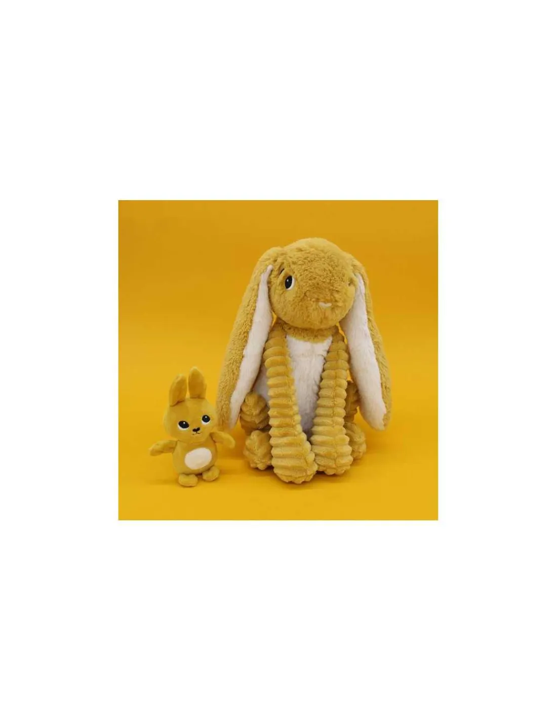 Découvrez la peluche Toudou le lapin jaune moutarde maman bébé de la collection Les Ptipotos by Déglingos, une peluche toute douce qui amusera beaucoup votre enfant. Toujours en compagnie de son petit, ce lapin tout doux viendra câliner votre bébé et décorer sa chambre.