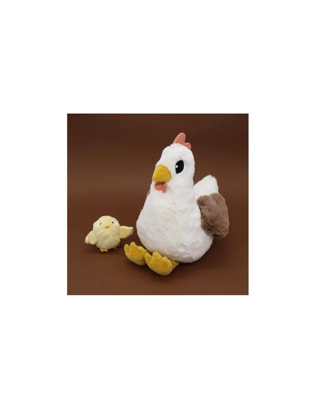 Découvrez Pioupiou la poule blanche de la collection Les Ptipotos by Déglingos, une peluche toute douce qui amusera beaucoup votre enfant. Toujours en compagnie de son poussin caché dans son ventre, cette poule toute douce viendra câliner votre bébé et décorer sa chambre.