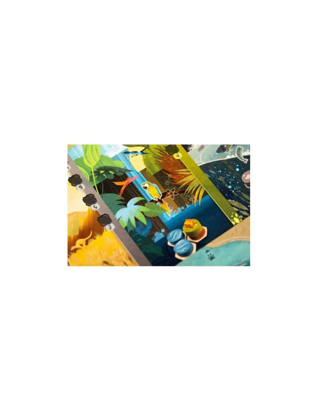 Construisez un paysage sur votre plateau en posant des séries de 3 pions et faites apparaitre des forêts, des montagnes, des champs et des villes. Sélectionnez ensuite les bonnes cartes « Animal » et reproduisez leur habitats pour qu’ils viennent peupler votre région. Qui obtiendra la plus belle faune ?