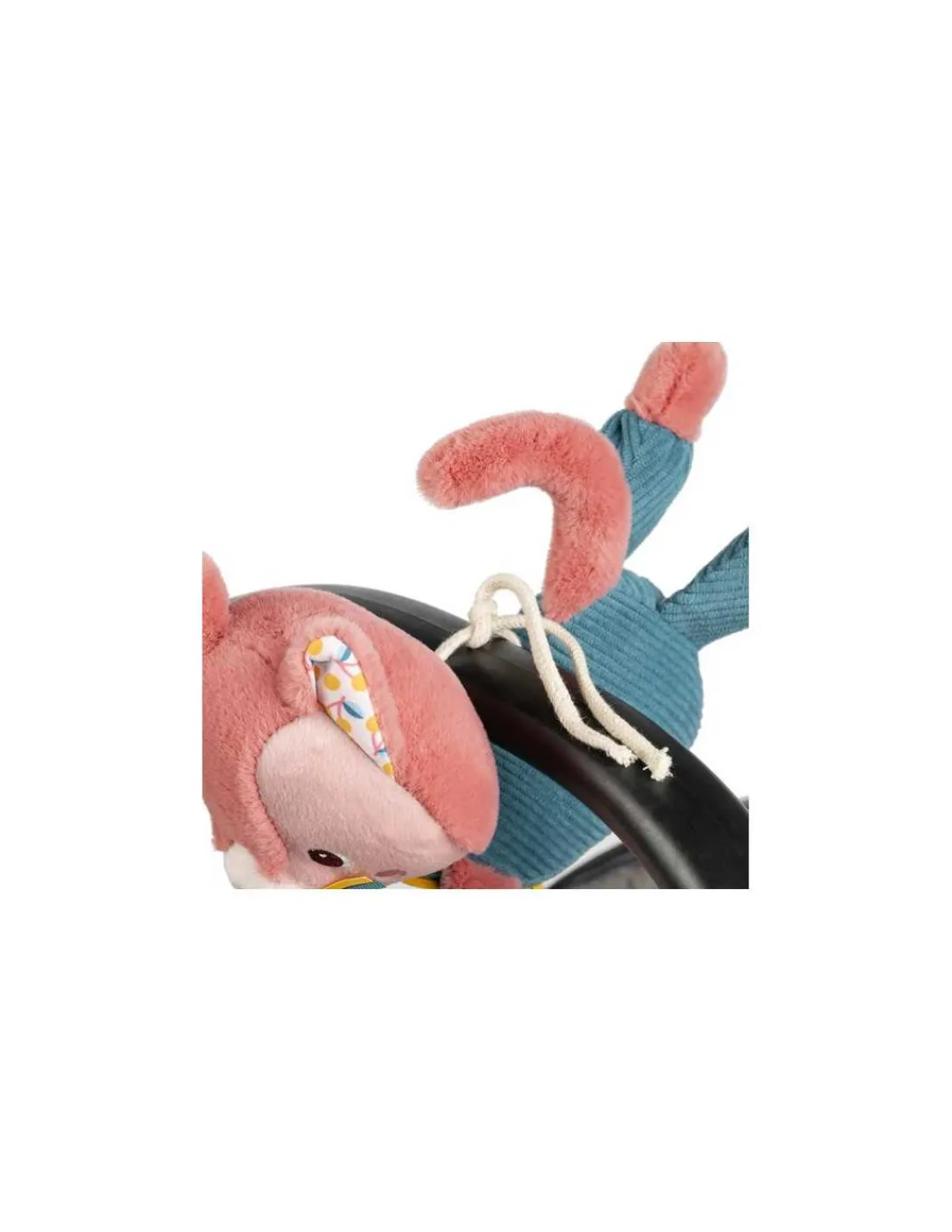 Jeanne le chat, accroché au siège-bébé, s’active joyeusement au-dessus de bébé. Elle joue avec les sons, le toucher et les reflets… de quoi intriguer votre bout de chou! Jeanne, la copine de voyage, se détache facilement pour devenir une peluche.