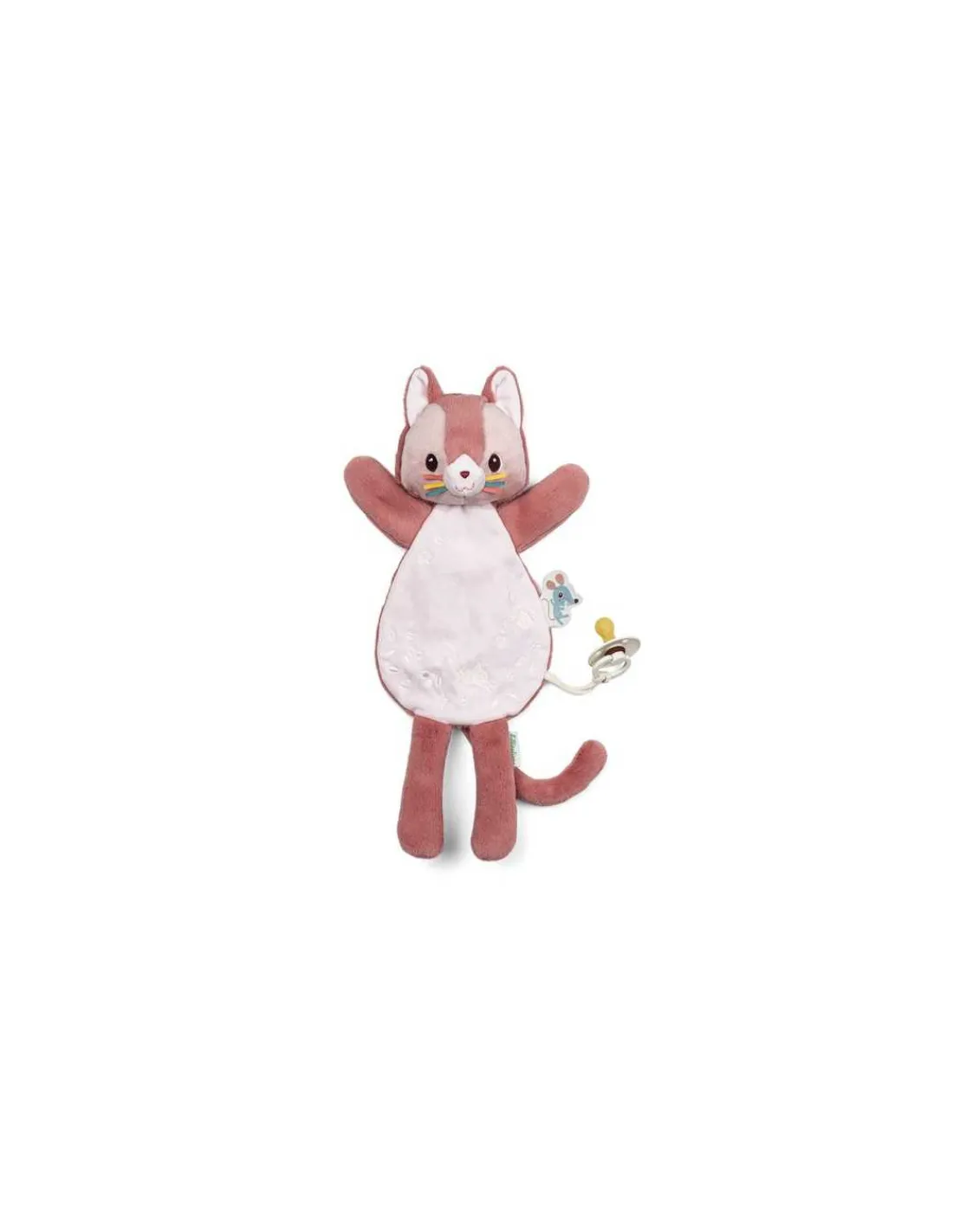 Jeanne le chat, douce mais intrépide, est le compagnon parfait pour les tout-petits dès la naissance. En plus de réconforter votre bébé, elle se transforme en marionnette amusante : glissez vos doigts dans ses bras et derrière sa tête pour le faire bouger, danser et parler. Parfait pour apaiser pendant la journée, elle devient également un compagnon pratique la nuit, brillant dans le noir pour retrouver facilement la tétine.