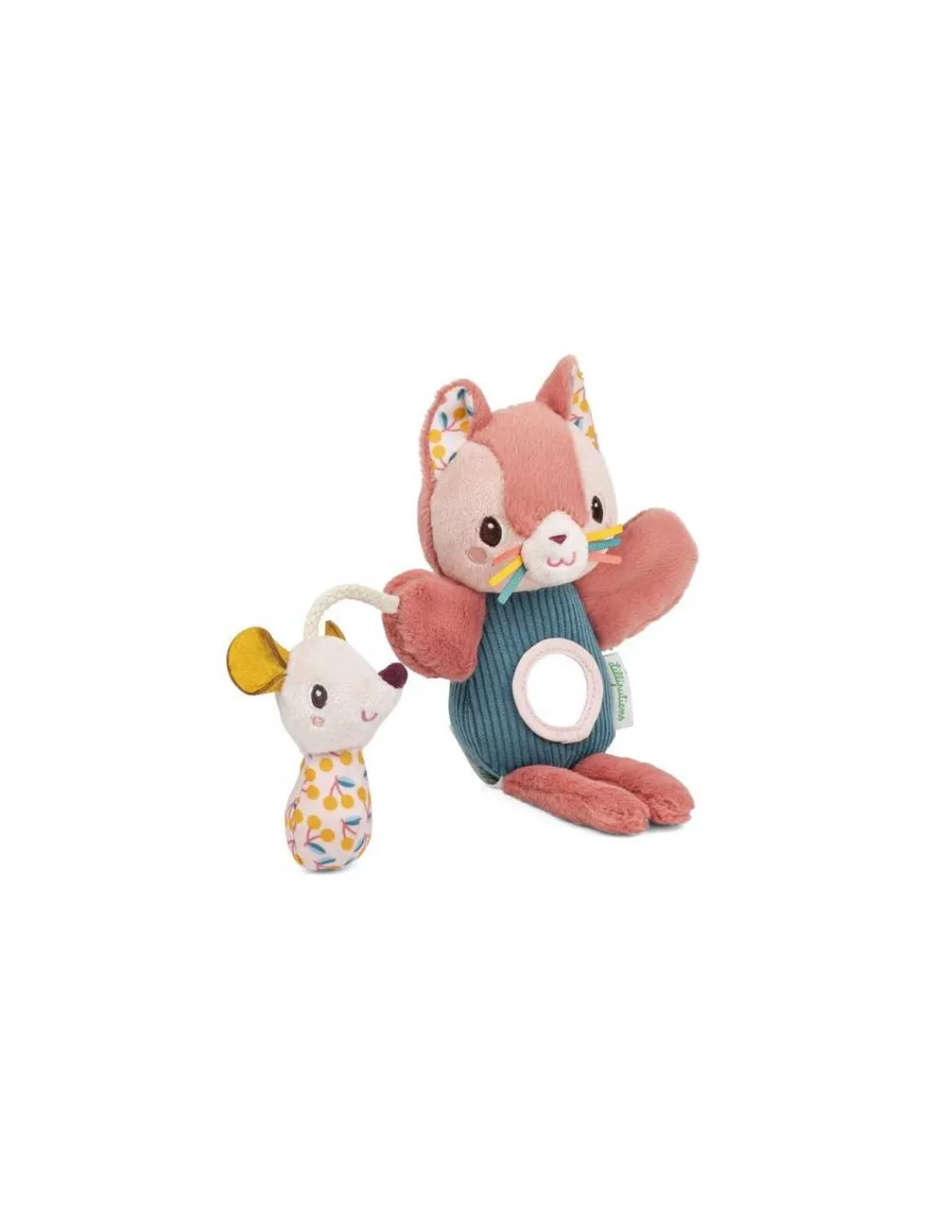 Cette petite marionnette est idéale pour divertir bébé. Avec son format pratique, on peut l’emporter partout avec soi pour la faire prendre vie. Pour cela, passez un doigt dans chaque bras de la marionnette et c’est parti pour le spectacle! Jeanne propose 3 activités pour divertir et stimuler les sens de votre bébé : un hochet situé au niveau de la tête, un miroir sur son ventre et son amis la souris qui crépite grâce à du papier bruissant.