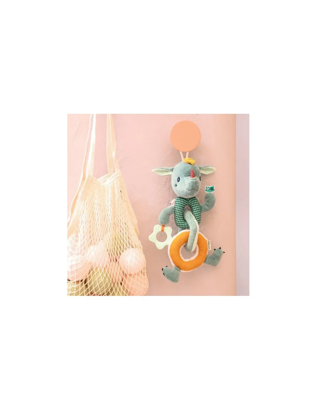 Cette guirlande souple aux couleurs de Joe le dragon comporte une multitude d’activités pour stimuler les sens de bébé : des bruits de cliquetis ou de crépitement, des matières variées, un anneau de dentition pour soulager les poussées dentaires de bébé… autant d’éléments qui encouragent les tout-petits à explorer.