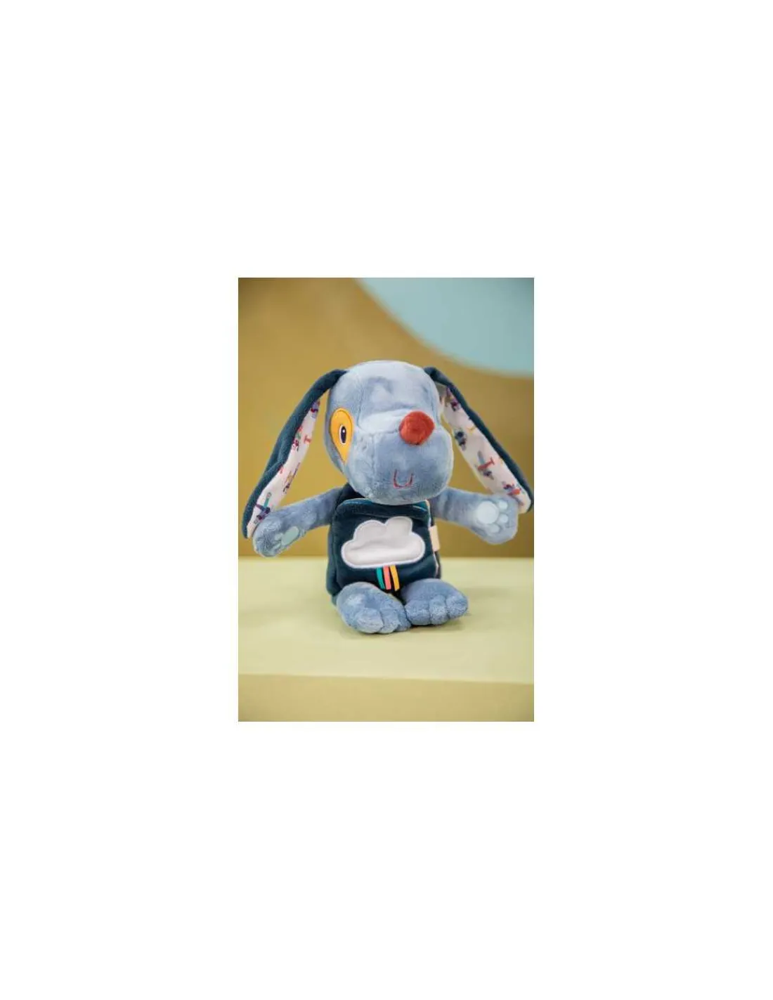 Jules le chien tout doux cache un imagier sur son ventre qui raconte le rituel du coucher. Quand la lumière s’éteint, un nuage et les petites pattes de Jules brillent doucement pour rassurer et veiller sur les jolis rêves.