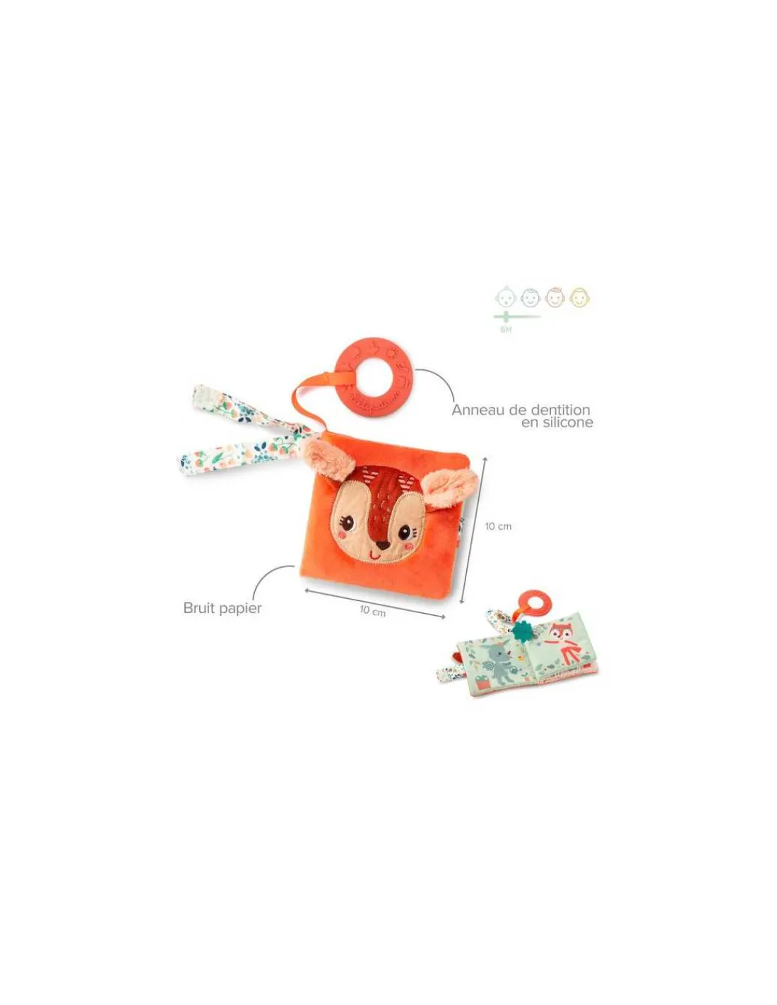 Retrouvez le faon Stella au cœur de la forêt en compagnie de tous ses amis. Un imagier tout doux qui stimule la vue et l’audition et présente même un anneau de dentition pour soulager les gencives des tout-petits.