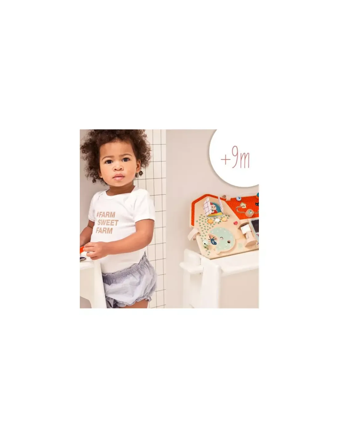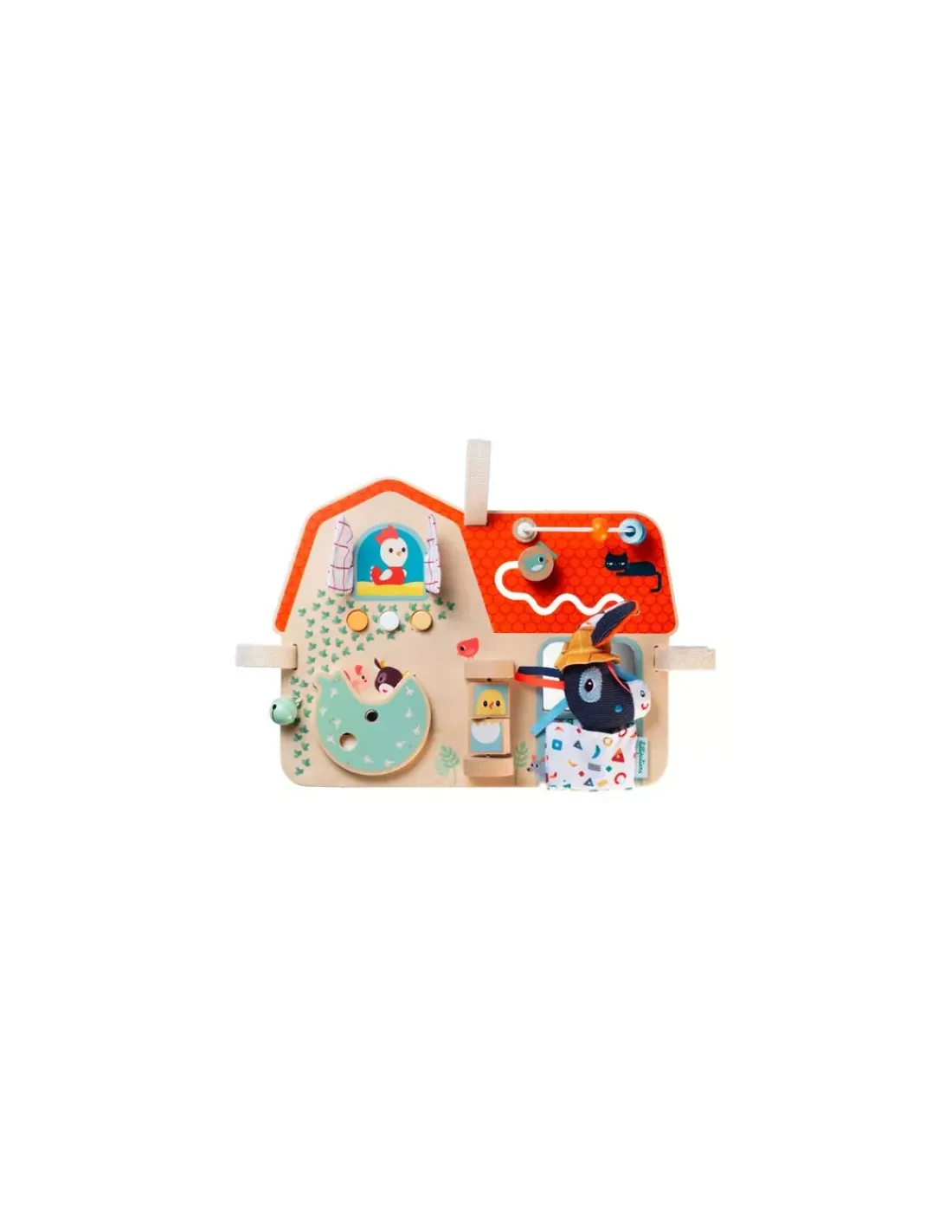 Découvrez le panneau d’activités Ferme ou busy board de Lilliputiens, un splendide jouet d’éveil en bois et en tissu très coloré pour les bébés dès 9 mois. Ce panneau d’éveil s’accroche facilement au parc de votre bambin grâce aux rubans velcro.