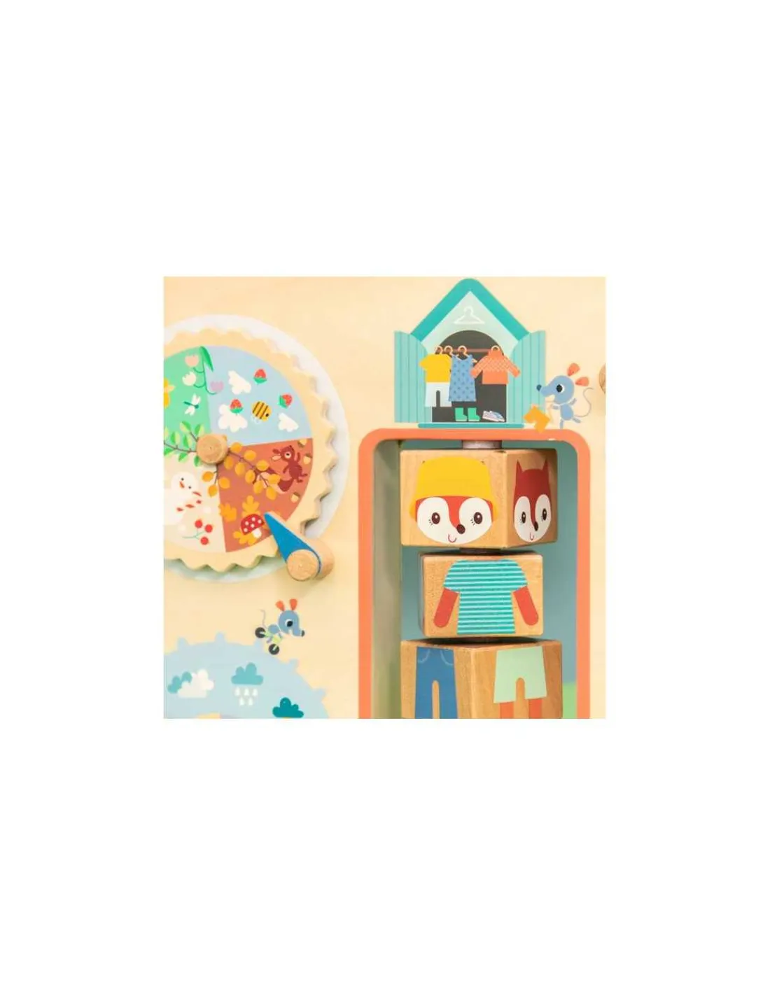 Avec Alice la renarde, composée de blocs en bois rotatifs, les enfants peuvent habiller leur personnage en fonction des conditions météorologiques. En tournant les blocs, ils apprennent à choisir les vêtements appropriés en fonction de la saison, de la pluie, du vent et de la température, favorisant ainsi leur autonomie et leur compréhension du monde qui les entoure.