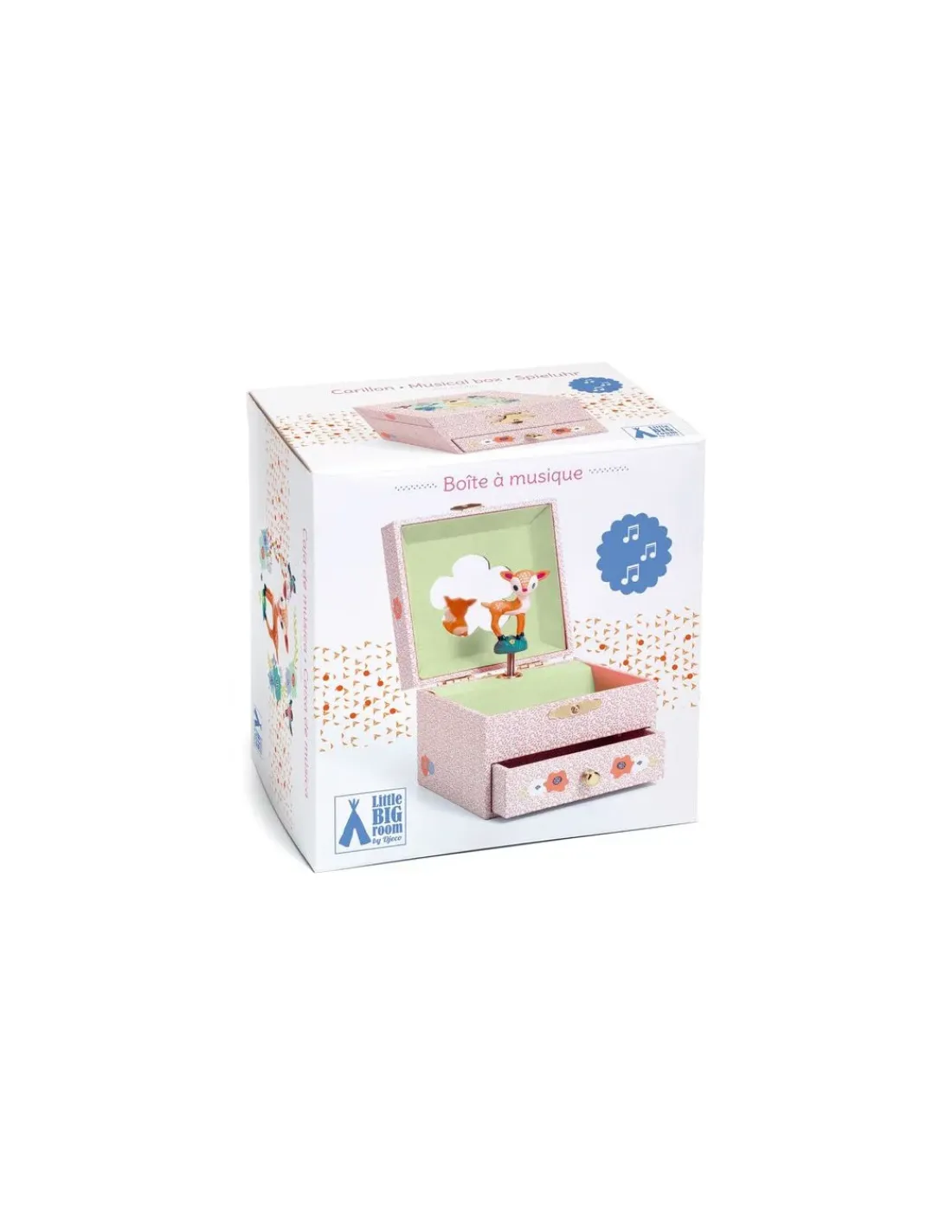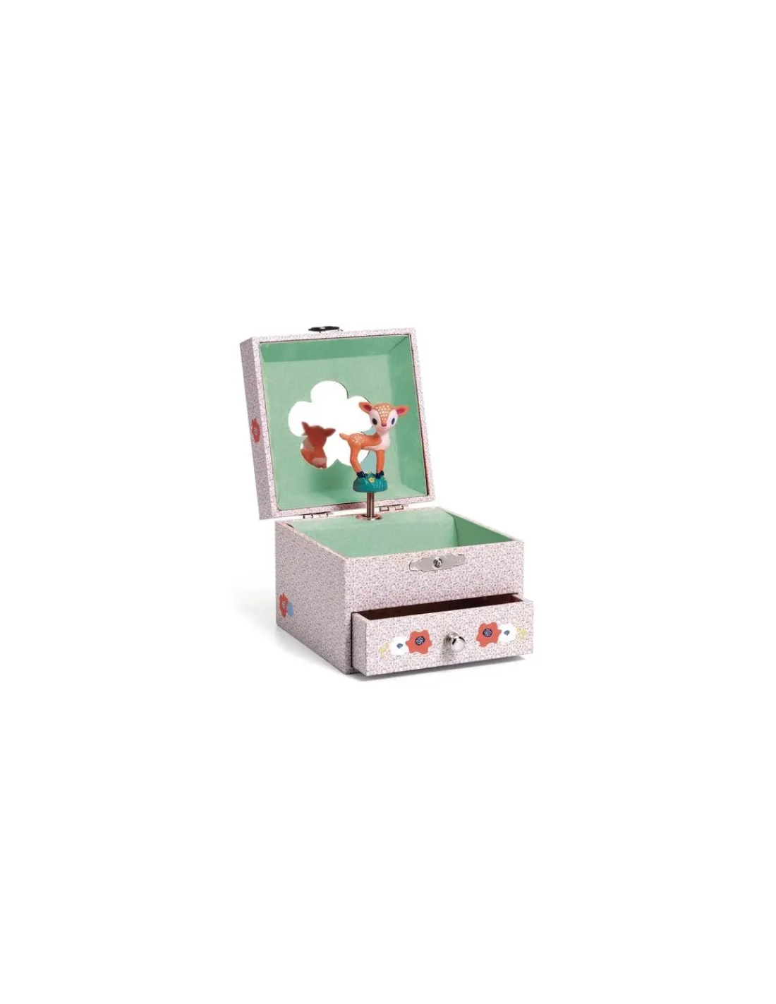 Découvrez la boite à musique Faon des bois de Djeco, une jolie boite à bijoux musicale en forme de cube, qui plaira beaucoup aux enfants.