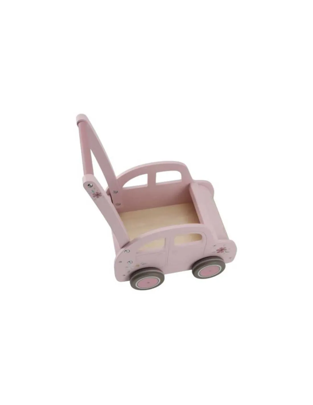 Cette belle voiture fleurie fait également office de coffre à jouets, offrant ainsi un rangement pratique pour votre bébé. Les bandes de caoutchouc sur les roues protègent votre sol, vous permettant de laisser votre petit explorer librement la pièce.