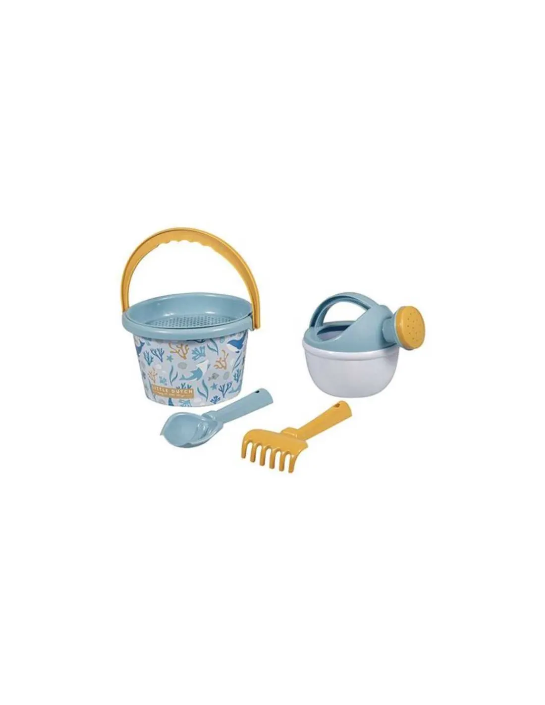 Découvrez le set de plage bleu de la collection Ocean Dreams de Little Dutch, un ensemble de jeux de plage parfait pour jouer avec le sable à la mer ou dans un bac à sable dans le jardin dès 12 mois.