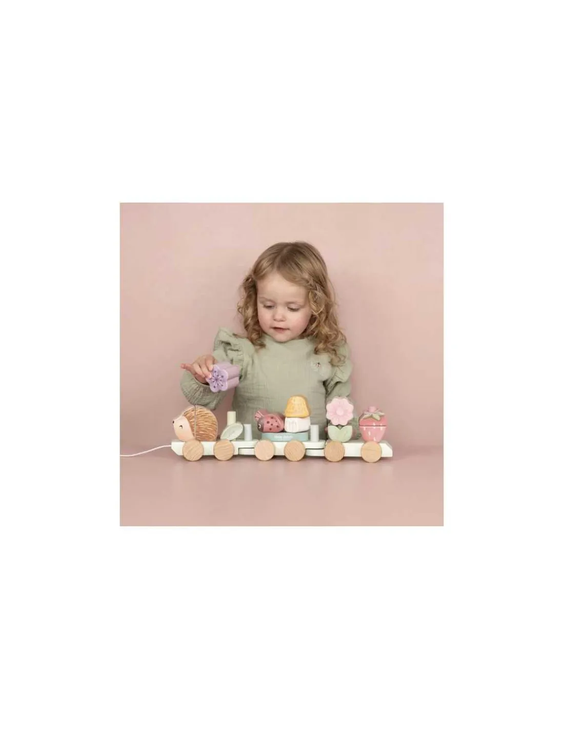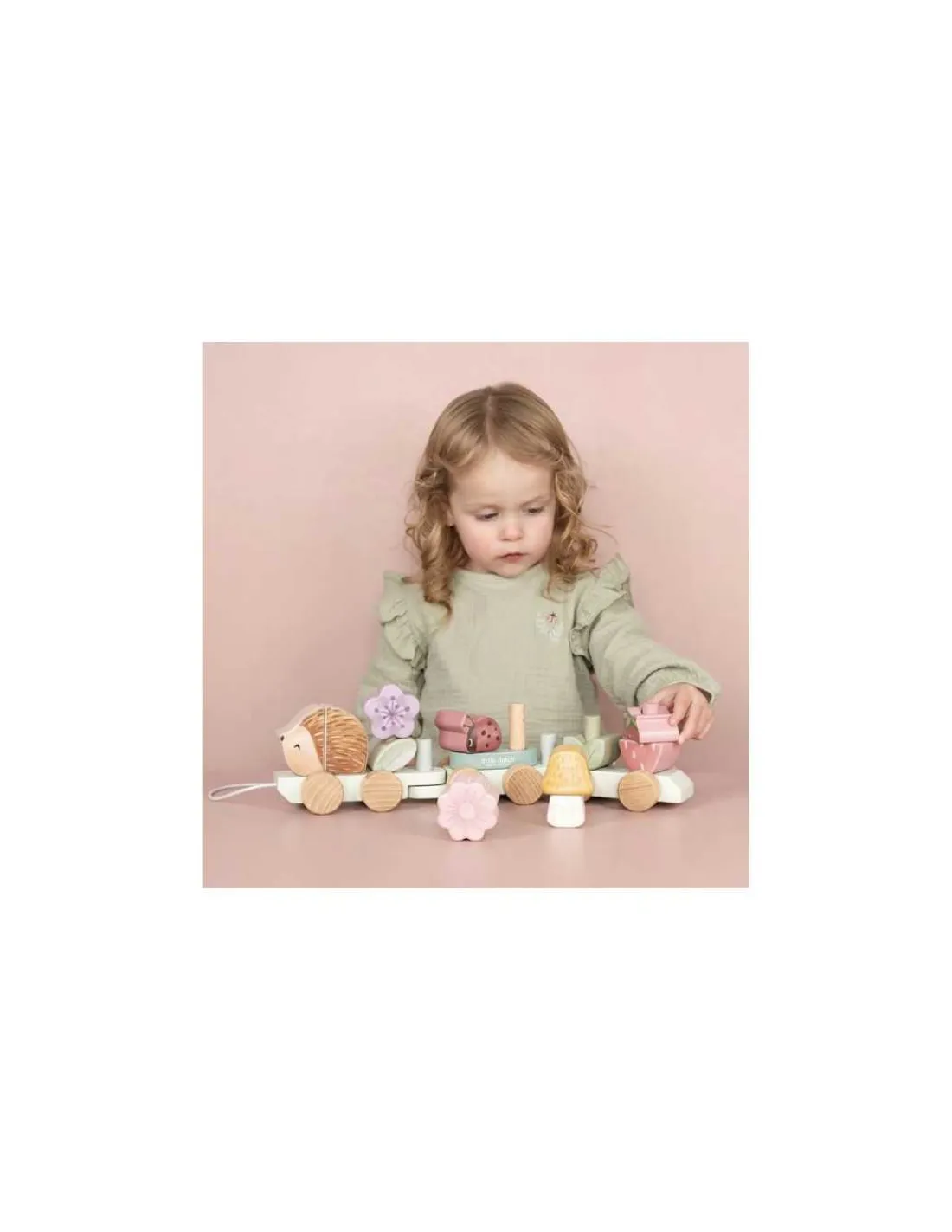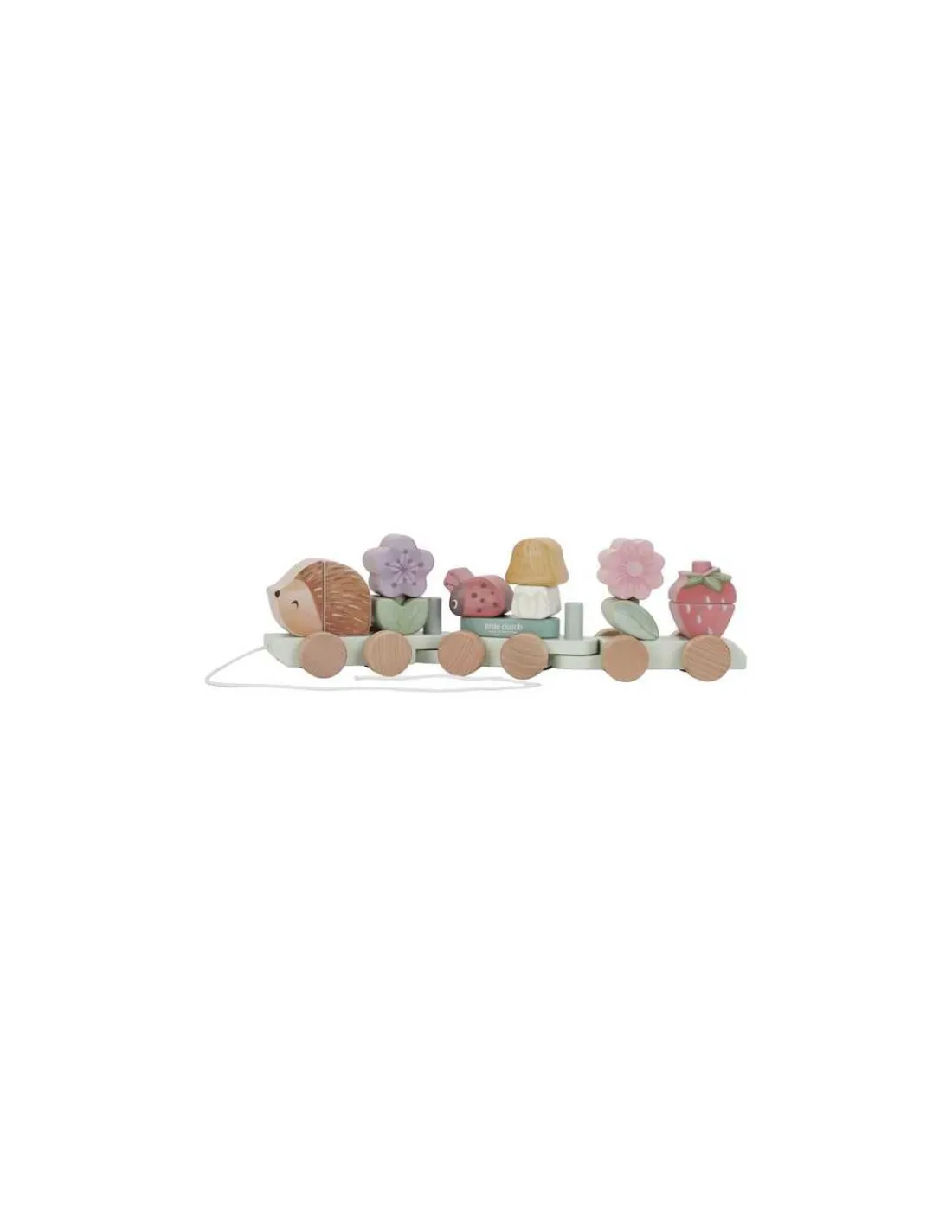 Découvrez le train à blocs hérisson de la collection Fairy Garden de Little Dutch, un jouet en bois 2 en 1 qui combine un jouet à tirer et un jeu à encastrer, parfait pour les enfants à partir de 12 mois.