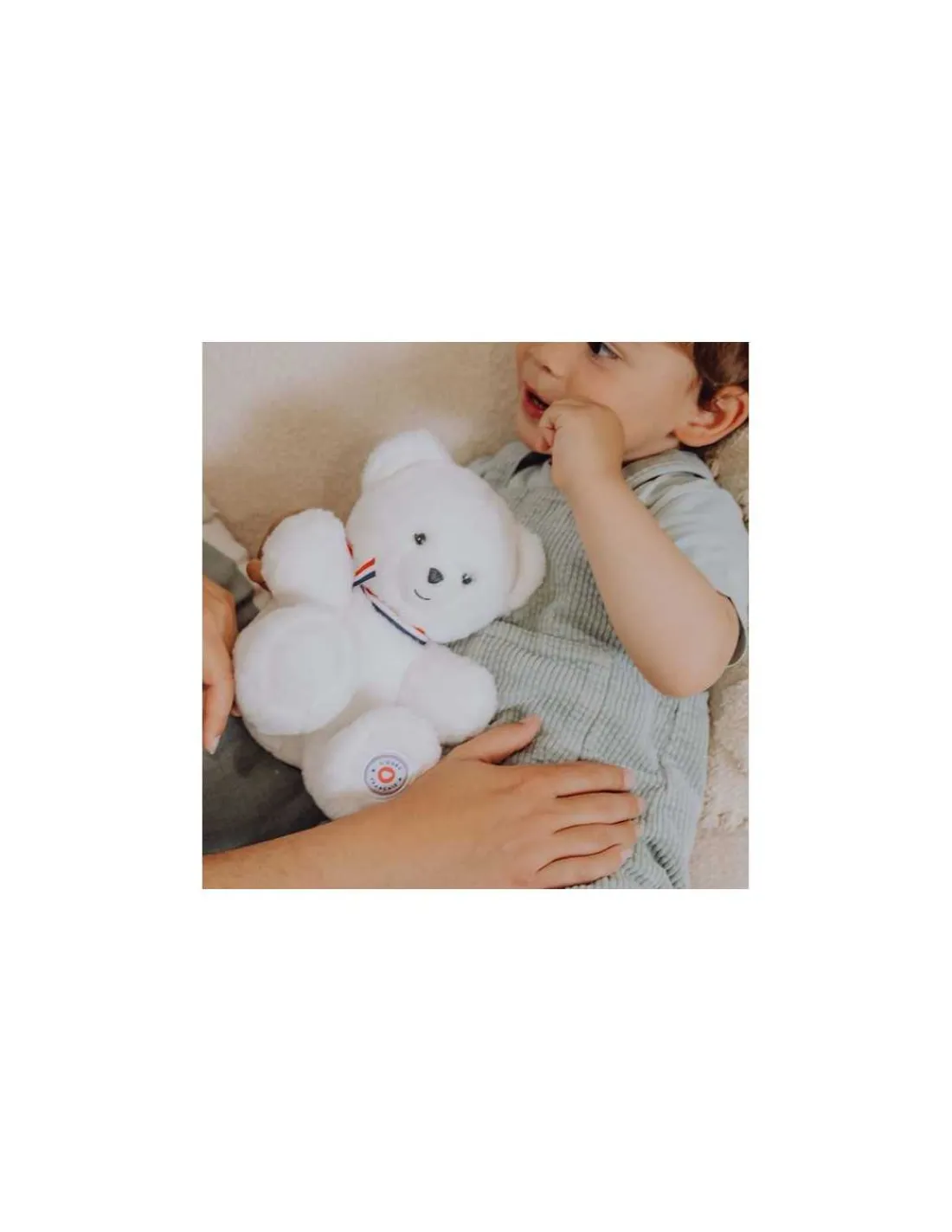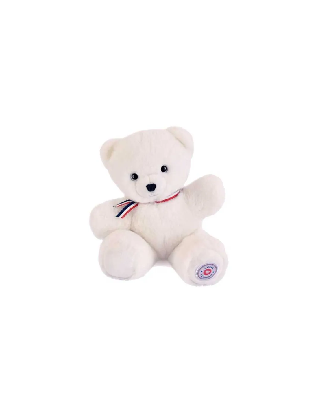 Découvrez la Peluche petit ours blanc L’ours français 25 cm, une adorable peluche fabriquée en France à offrir à bébé dès la naissance. Un ours articulé traditionnel, subtilement habillé d’un ruban bleu blanc rouge pour honorer le savoir-fabriquer français.
