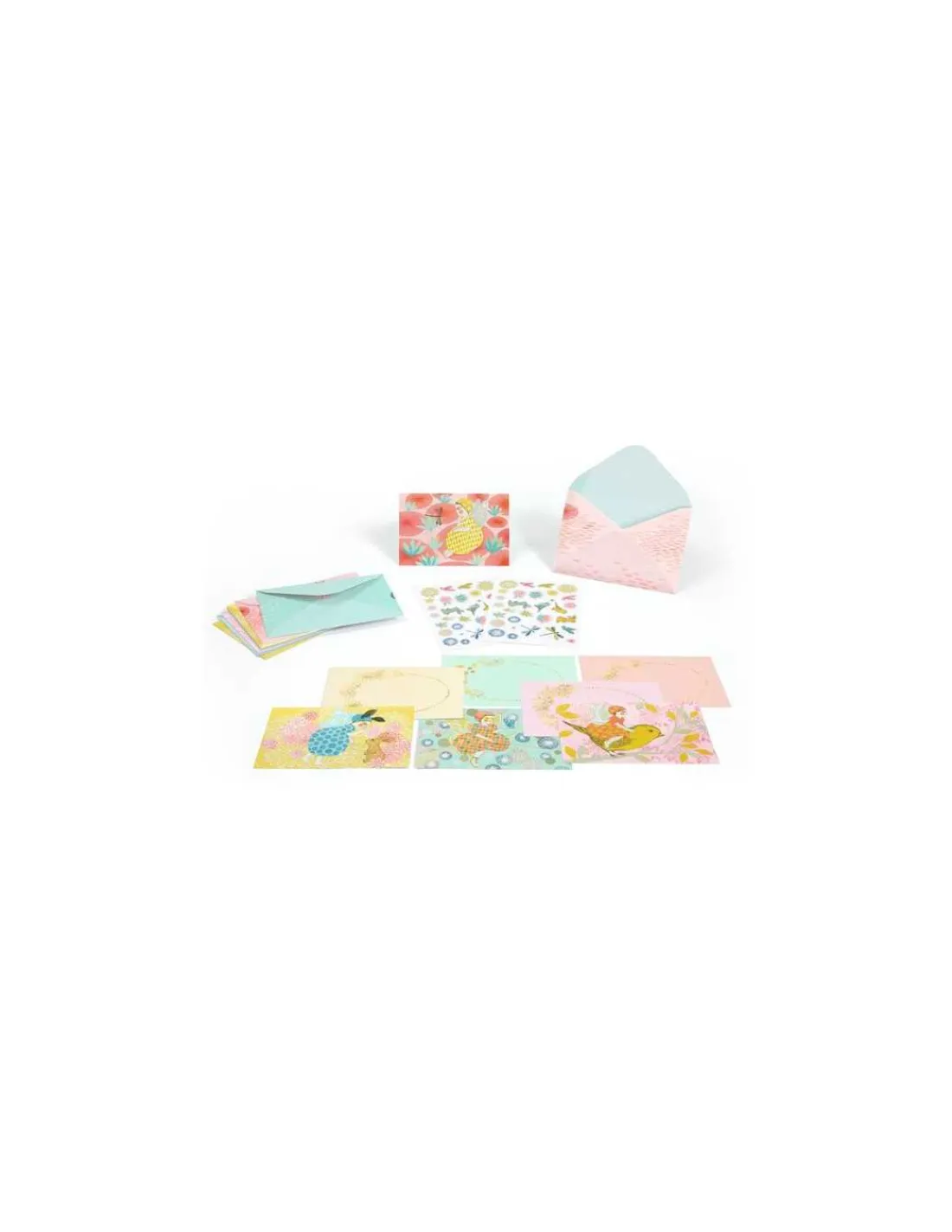 Cette boite de correspondance comprend 8 cartes illustrées avec des lignes pour écrire facilement un message clair et soigné, 8 enveloppes illustrées pour ajouter une touche de charme et d’originalité et surprendre dès l’ouverture, ainsi que 2 planches de stickers pour personnaliser chaque invitation.