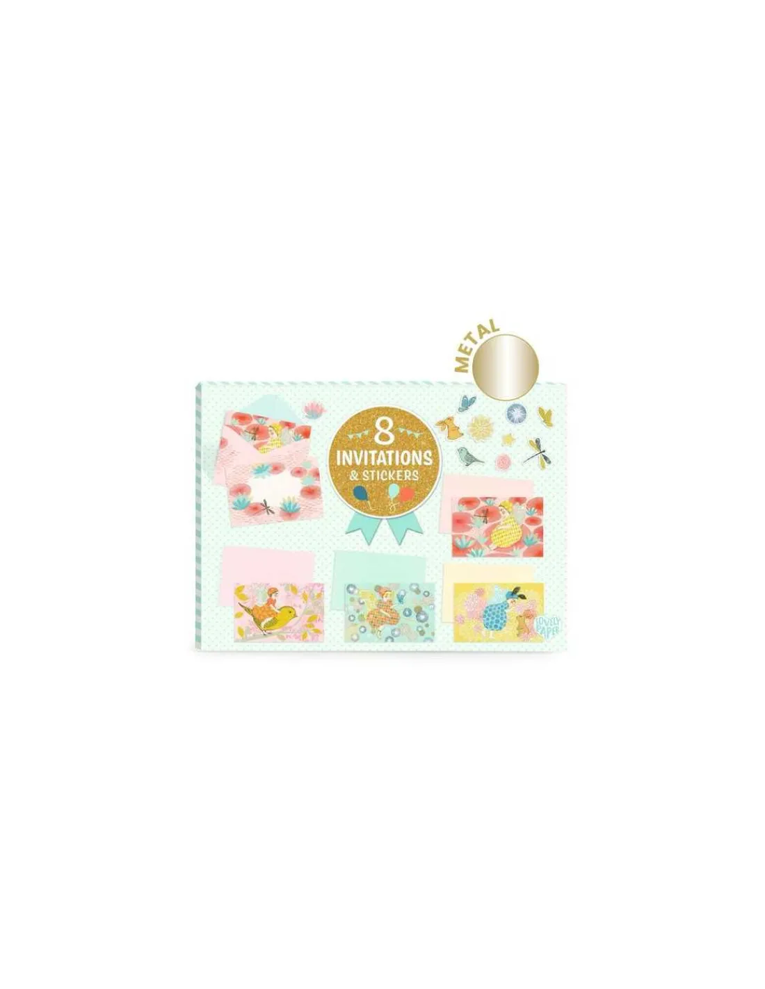 Découvrez les cartes d’invitation Fées d’un jour de Lovely paper by Djeco, un coffret de papeterie aux effets métallisés renfermant des cartes d’invitation illustrées sur le thème des fées, des enveloppes assorties et des planches de stickers pour personnaliser chaque message.