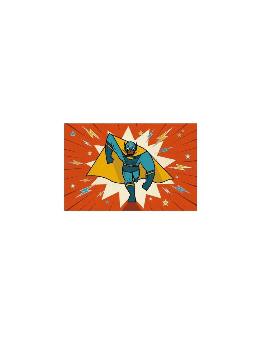 Ce coffret contient 8 cartes d’invitation (4 x 2), 8 enveloppes (4 x 2) et 2 planches de stickers sur le thème « Super-héros ».