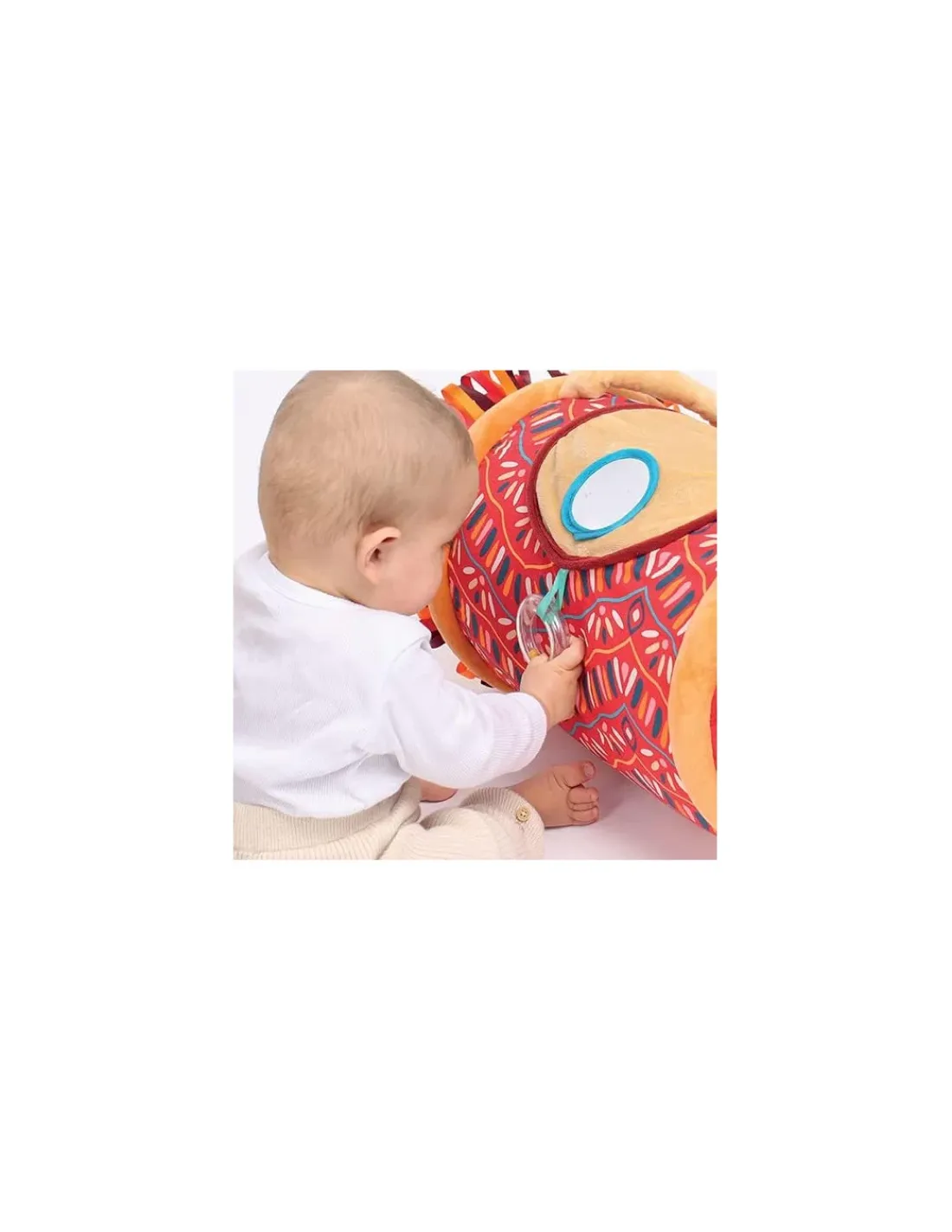 Adapté pour les enfants à partir de 6 mois, bébé pourra rouler, chevaucher ou escalader le jouet et mettre à l’épreuve son équilibre à l’aide de la petite poignée. Ses textures douces et les 5 activités sensorielles pour s’éveiller, un joli miroir pour stimuler sa vue, et des grelots pour affiner son ouïe en feront un très beau cadeau à offrir.